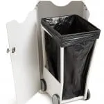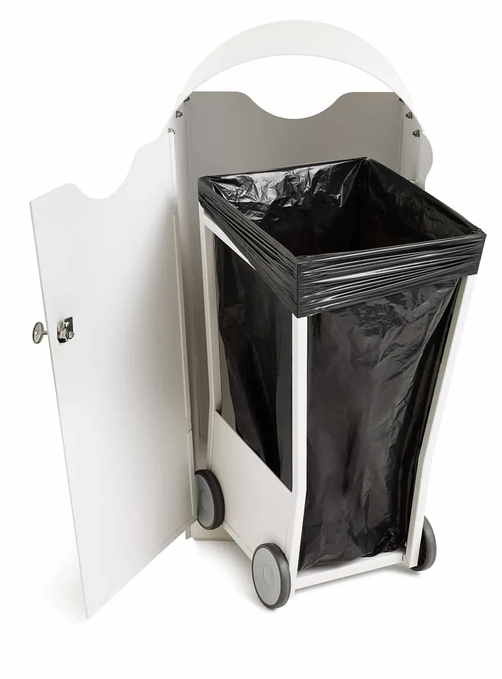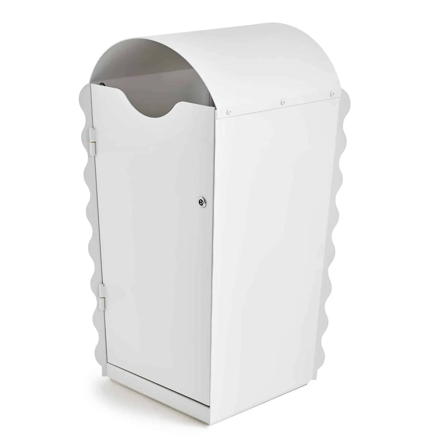The Flower is designed with a wide opening that makes it easy to place waste inside, encouraging cleaner surroundings. The litterbin is embellished with serpentine strips on each corner, and is efficiently designed in two separate parts. The outer shell is made with a generous door panel that swings open to reveal a separate unit inside. The unit holds plastic bags of up to 120 litres in volume, and wheels out to make emptying easy and quick. An excellent choice for outdoor areas and indoor spaces alike.