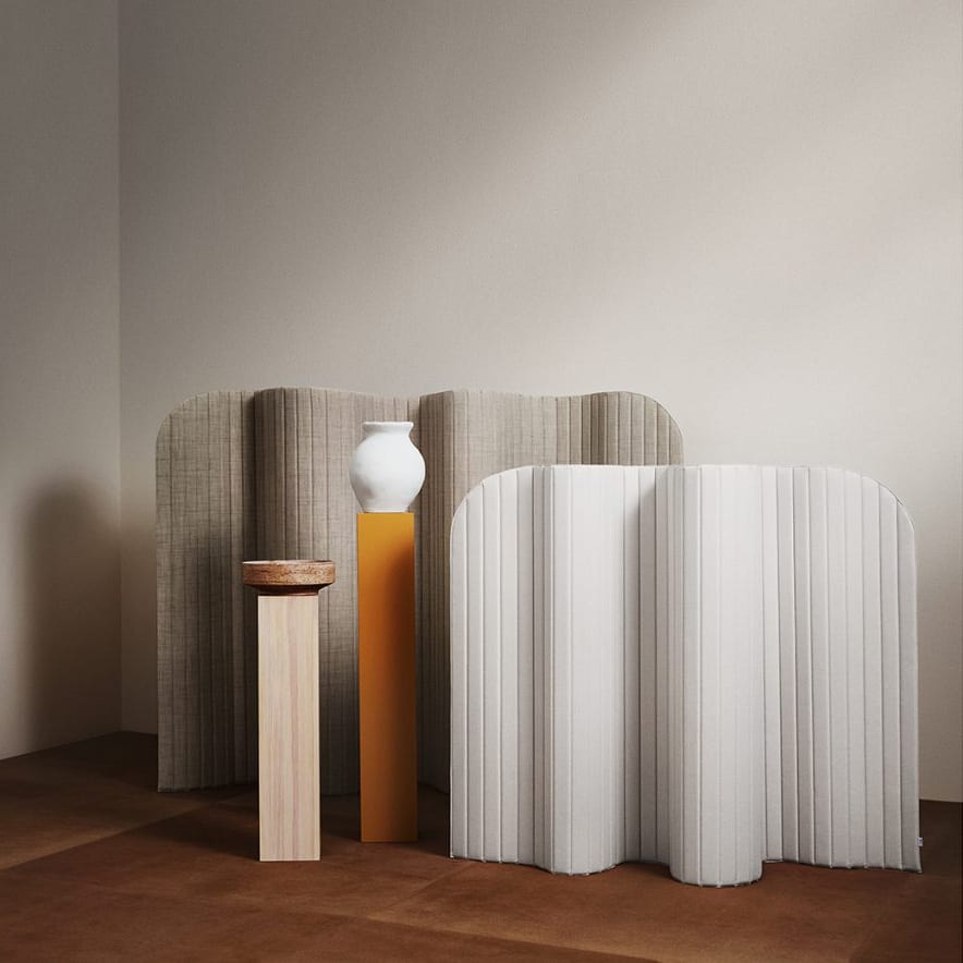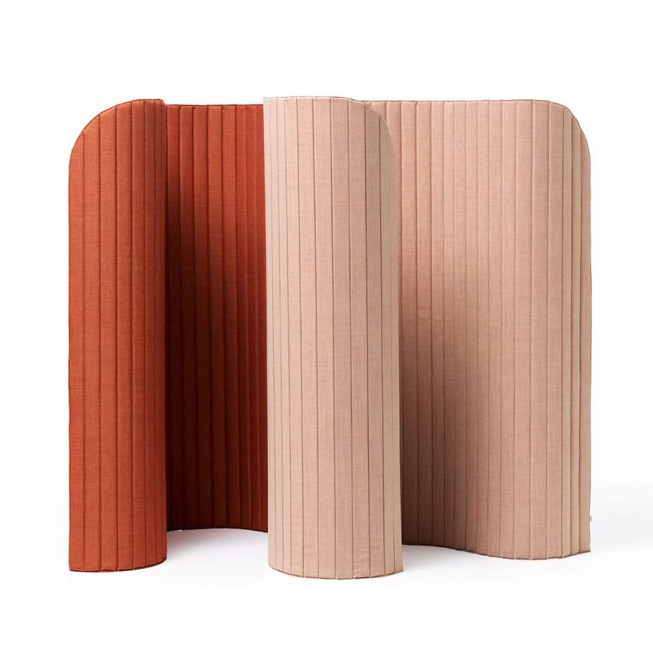 Its feather-light character allows a single person to reconfigure a space quickly — an important quality in offices where open-plan layouts are the norm and the demand for focused work zones changes throughout the day. The textile surface provides visual screening without the weight or rigidity of solid partition systems, and the choice of fabric as the primary material connects the product to a longer tradition of soft furnishing as a tool for spatial division.
