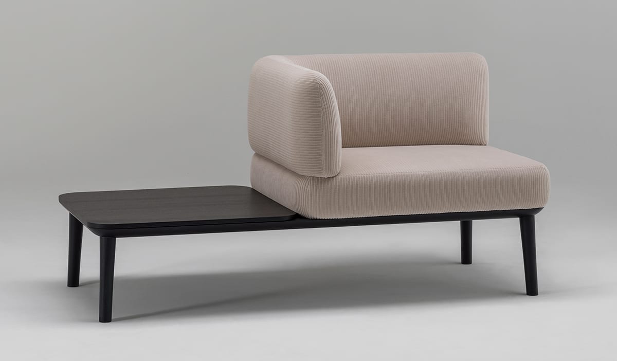 The image that Teruhiro Yanagihara had in mind during the process was a mille-feuille, a French pastry of many layers which can be varied in different ways. The name ‘Sou’ comes from the Japanese ‘chisou’ which means ‘stratum’, with the prefix ‘chi’ (base) and the suffix ‘sou’ (layer). “It’s about how the sofa is designed, but also the fact that it can have different uses and expressions depending on how you choose to combine the different layers. Since the seat and backrest are separated, you can choose different colours of fabric or different finishes on the table part, for instance” Teruhiro Yanagihara explains.