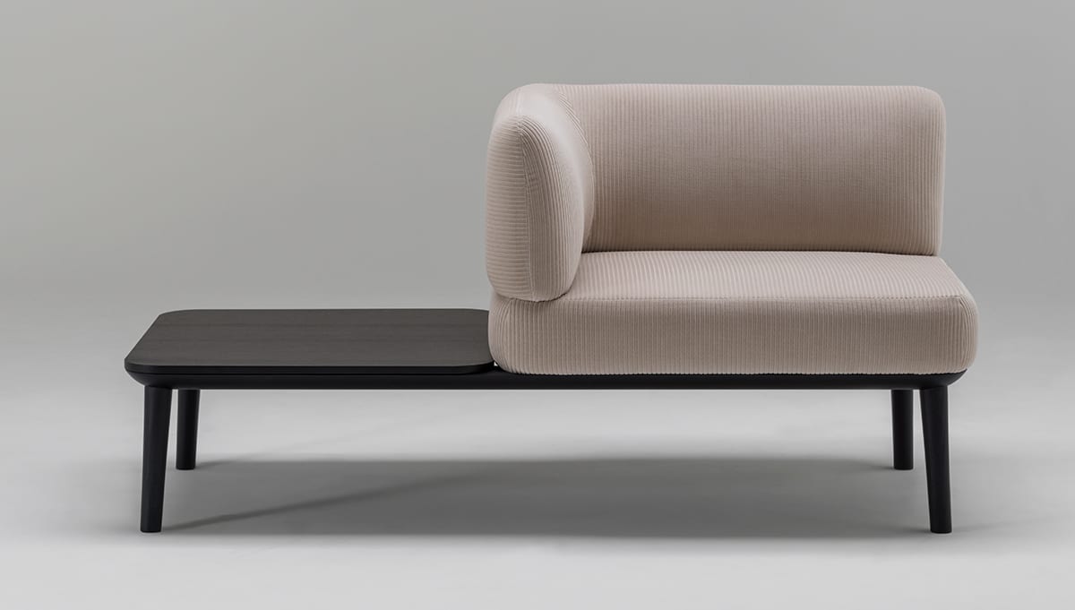 Teruhiro Yanagihara has a background in spatial design and architecture and always thinks about rooms and surfaces, rather than individual objects. As in his previous collection for Offecct, Osaka, the new Sou sofa is based on a spatial perspective where the furniture works as a flexible jigsaw puzzle. “My idea was to start with the sofa’s most basic parts and let the different shapes and functions overlap in layers. The seat is a little higher, so it goes particularly well in restaurants and waiting rooms, for example,” he says.