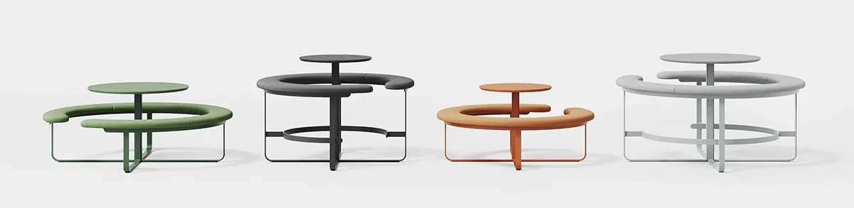 The result is Picnic, a new communal seating range that dresses up and transforms the familiar outdoor inspiration into a warm and simple gathering point indoors. With small means Picnic offers people the opportunity to sit up high, lean on, and gather from 2 to 6, shoulder to shoulder, around a campfire of sorts. It’s design affords people the opportunity to maneuver in, and around it much like its wooden counterpart. The decision to make the range exclusively round and with fixed seating allows for Picnic tables to be easily placed in high traffic areas as well as avoid clutter. It’s a collection for the workspaces we are coming back to where sharing and collaborating are key.