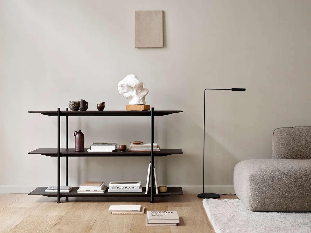 Choose one out of seventeen pre-arranged configurations and elevate the design and functionality further with well-considered complements in the form of trays, magazine stands and book supports.