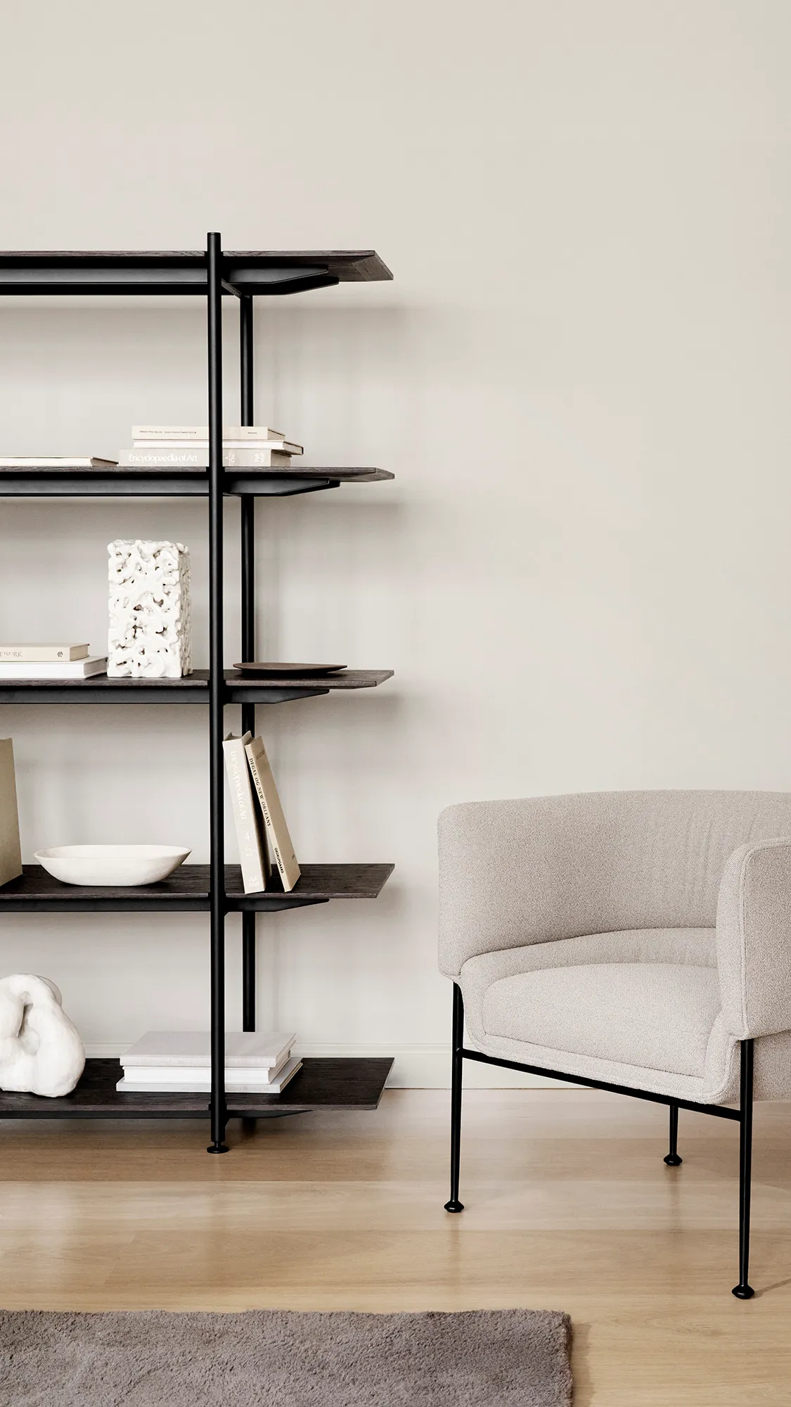 Guided by its simplicity in form and function the Formal Shelving system designed for long-time collaborator Wendelbo in Denmark is constructed with only two materials and a restricted number of parts.
