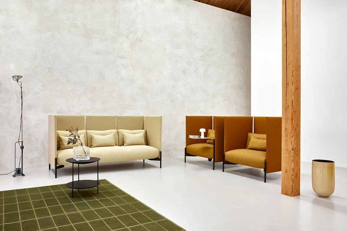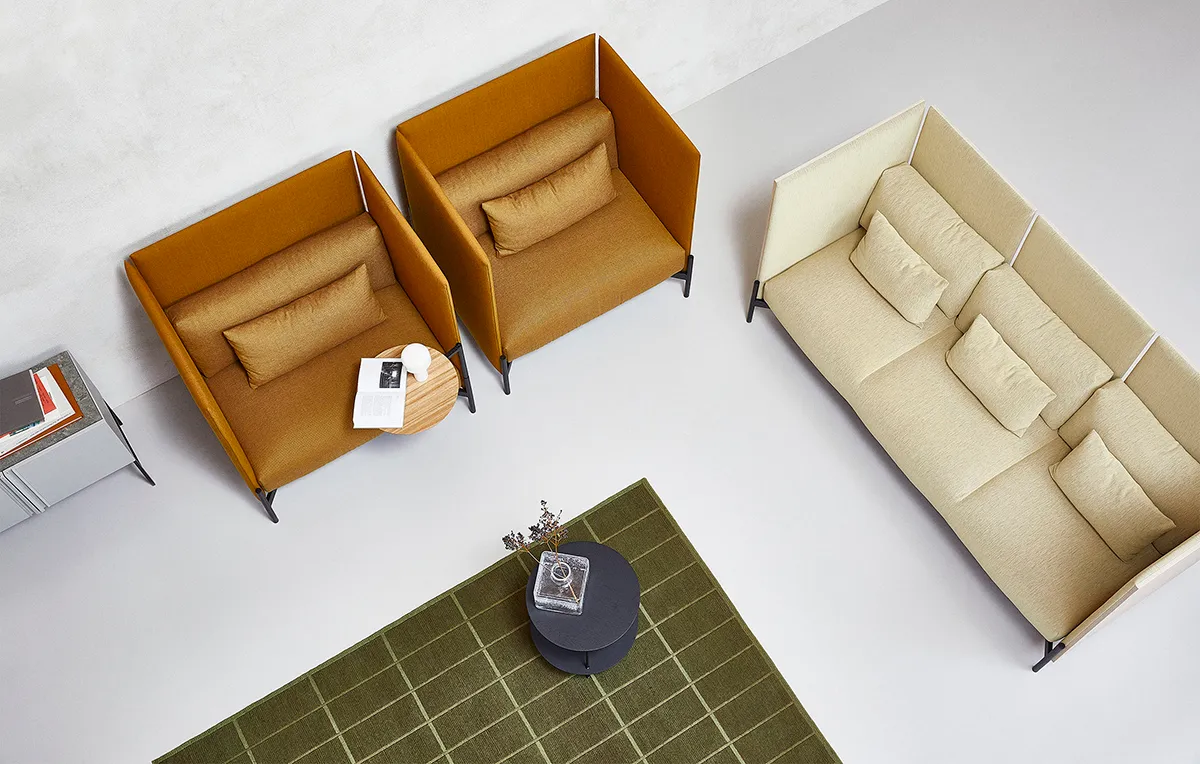 Fragment is a series defined by details that inform its function. Peepholes slice through corners so it’s easy to gauge occupancy of seats and sofas indirectly, and back and side sections flow upwards to give the sitter a little privacy and room to think.