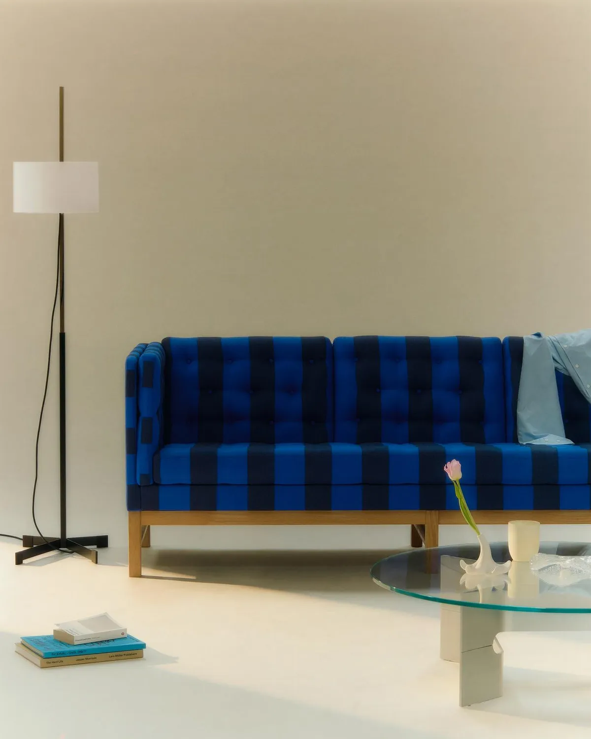 In 2025, Fredericia Furniture celebrates the 50th anniversary of the EJ315 Sofa, designed by Erik Ole Jørgensen in 1975. The anniversary edition merges the original design with Raf Simons’ striped Reflex textile from Kvadrat, adding a fresh dimension to the sofa’s classic expression.