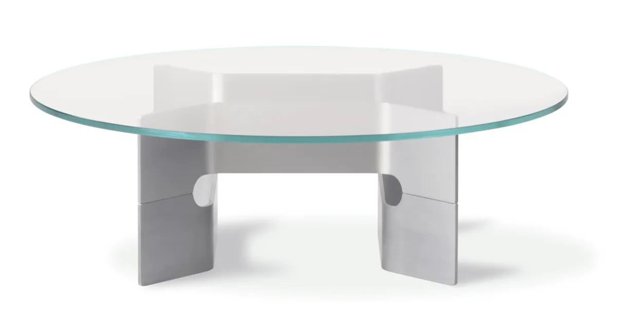 The absence of the traditional four legs means that the JG Coffee Table establishes a solid, anchored presence in the interior despite its entirely airy appearance. The transparent glass tabletop highlights the base’s interesting and logical construction in the design, creating a contrasting effect between light and solid, that changes according to the viewer’s point of view, bringing the design to life.