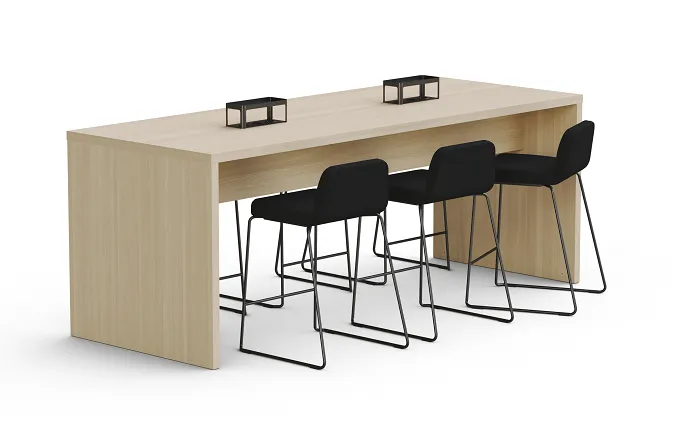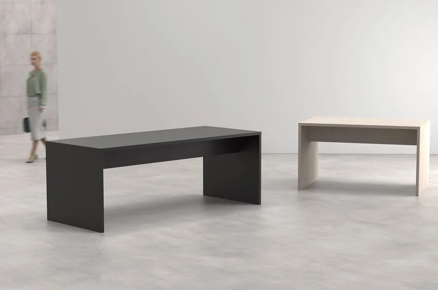 The Nomono Conference meeting table addresses varied workspace requirements through multiple height configurations. Fredrik Mattson’s design offers tables at 73cm, 90cm, and 106cm heights, supporting seated meetings, project work, and standing conferences. The table construction uses 38mm MDF with 90-degree corners and straight matching edging, creating defined geometric forms suitable for professional environments.
