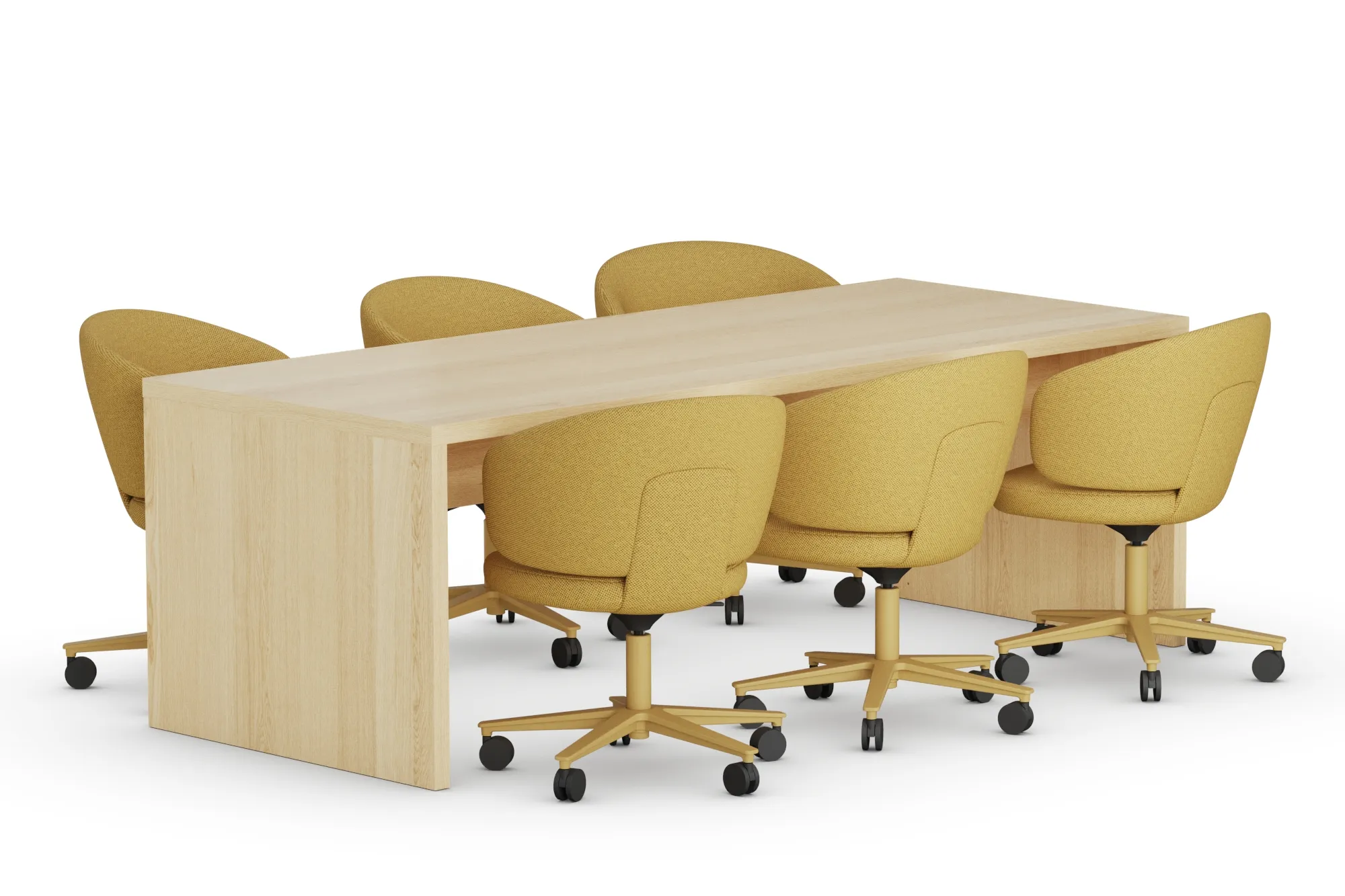 Nomono Conference tables accommodate different spatial requirements through five length options (160cm, 180cm, 200cm, 220cm, and 240cm) and multiple depth specifications (70cm, 80cm, 90cm, 100cm, and 110cm). The 70cm depth option applies exclusively to the 90cm and 106cm height variants. This dimensional range allows organizations to specify tables matching specific room proportions and meeting group sizes.