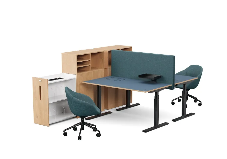 Fredrik Mattson’s design approach for both Nomono systems emphasizes geometric clarity and material honesty. The full sides and fixed horizontals of Nomono Conference create balanced proportions, while the T-stand of Nomono T reduces visual mass. Optional Nomono storage units add mobility to the work desk system, supporting flexible workspace reconfigurations.