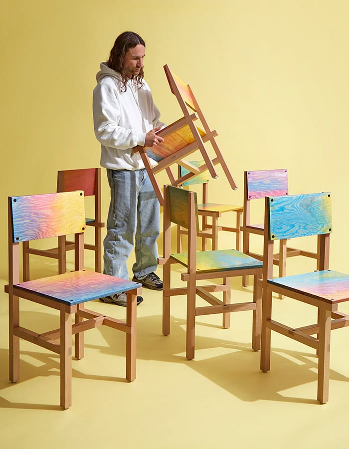 With a playful approach to the carefree and mundane, he experiments with creative processes challenging the sense of preciousness inherent to the field of design.
