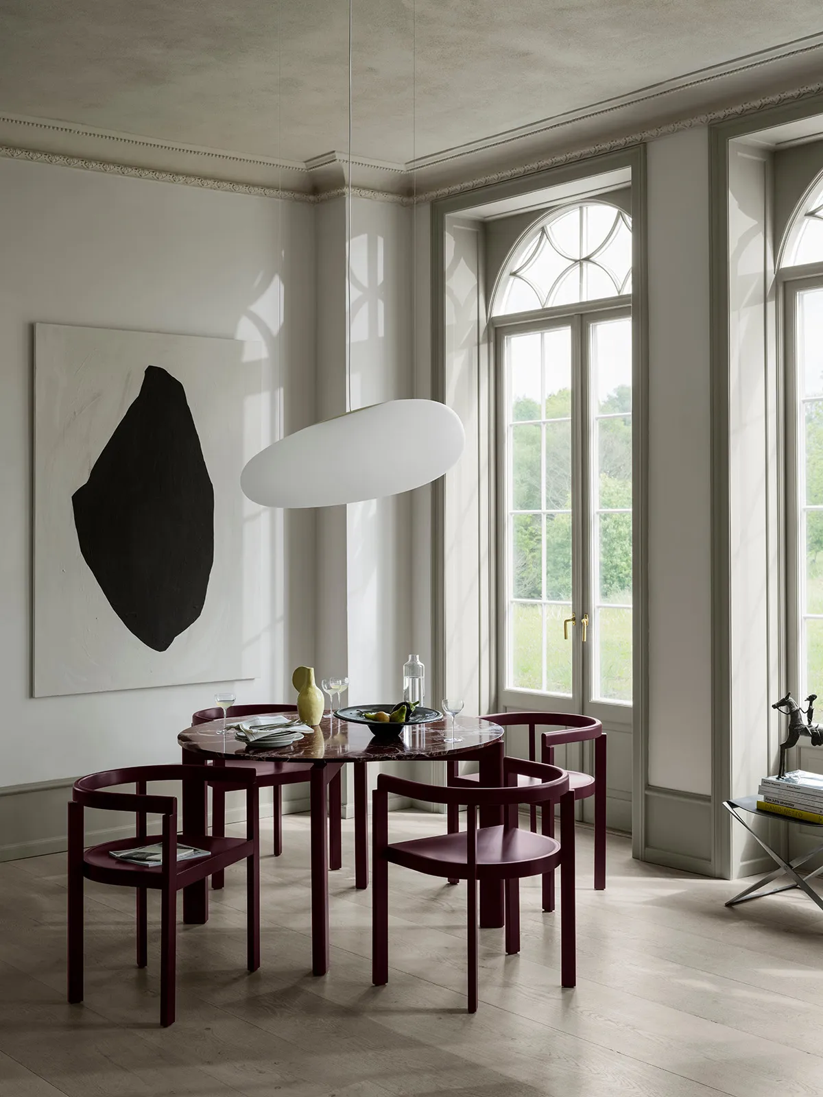 “In Ash you get Fritz Hansen the manufacturer – the details, the immaculate delivery, the comfort maximised for the chair without losing the aesthetic purity. Whereas the burgundy and marble table feels as if it has landed exactly where the brand is at from a design perspective.”