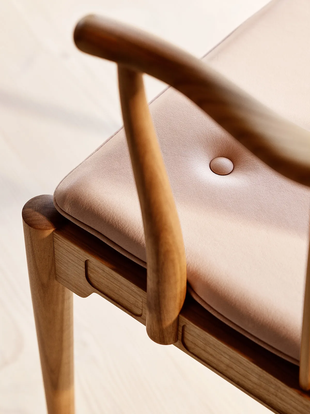 More handcrafted in all respects, the China Chair is made from highest grade wood that is carefully selected so the grain is mirrored on both sides of the chair. To mark the 80th anniversary, the 80 chairs are being made in European cherry in the same labour-intensive way they have always been produced. Celebrating wood in a contemporary way, they are finished with oil to highlight the beauty of the grain. This understated treatment is complemented by the natural tactility of the Pure leather used for the seat cushion, which will become more beautiful over time.