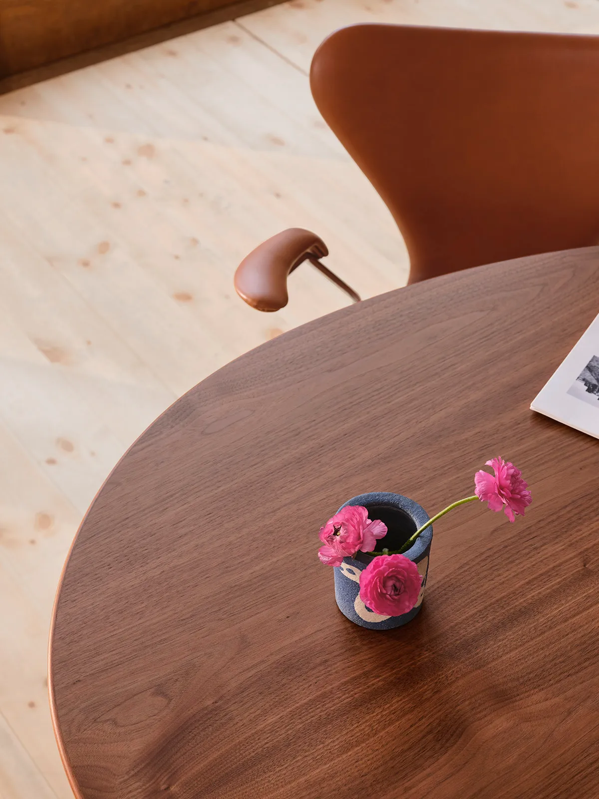 The original Egg table was in production until 1960. In 2002, the unique table design was launched as part of a limited-edition set including three Ant chairs to mark what would have been Jacobsen’s 100th birthday.