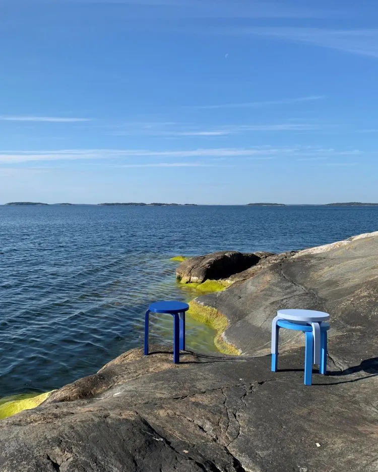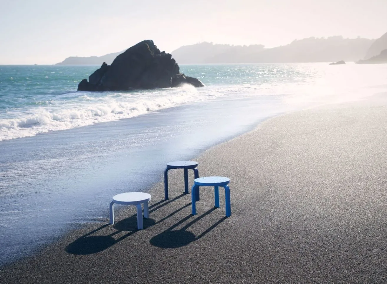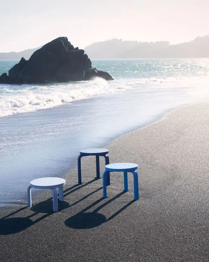 This time, Heath reimagined Artek’s Stool 60 in colors inspired by the endless shades of blues of the Pacific and Baltic coasts. Moonstone, Bright Blue, and Glacier, embody the energizing pause of blue’s pure and universal glow.