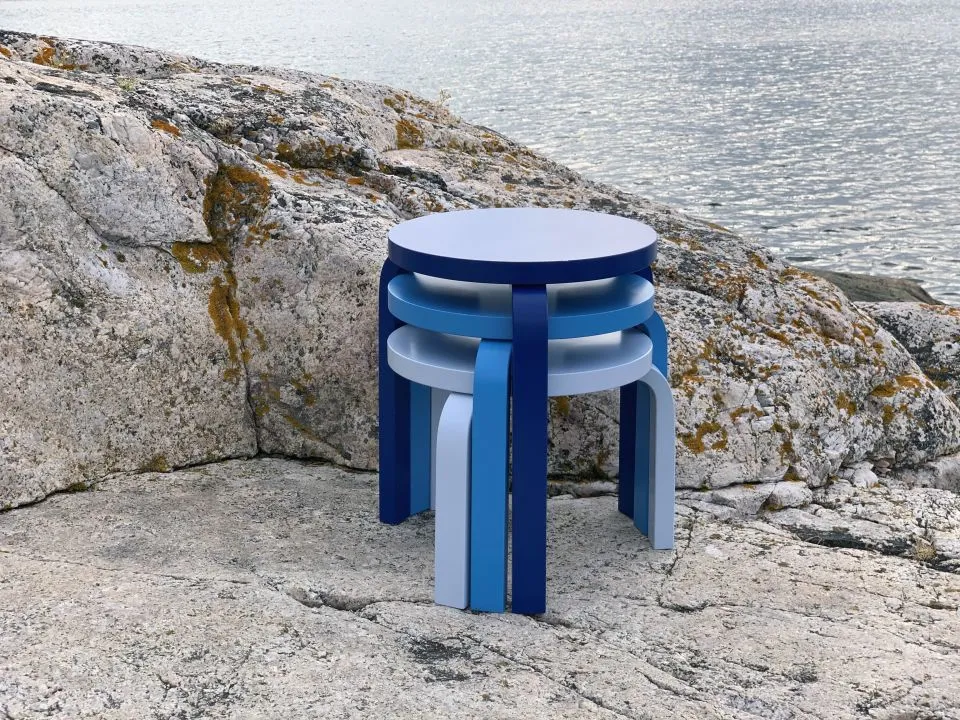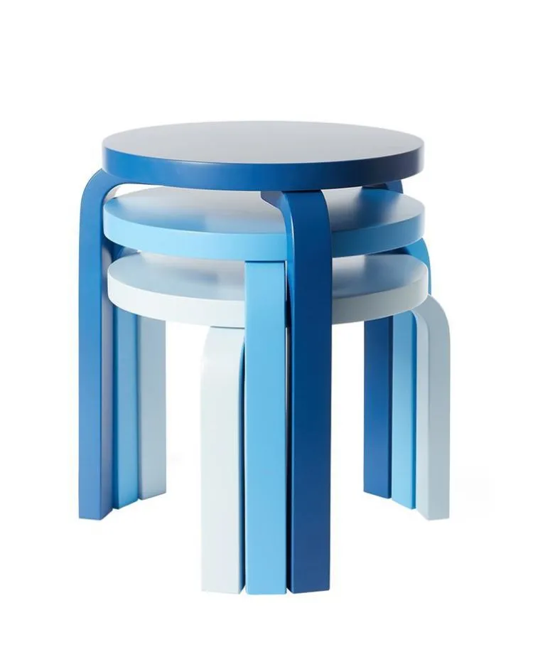 This time, Heath reimagined Artek’s Stool 60 in colors inspired by the endless shades of blues of the Pacific and Baltic coasts. Moonstone, Bright Blue, and Glacier, embody the energizing pause of blue’s pure and universal glow.