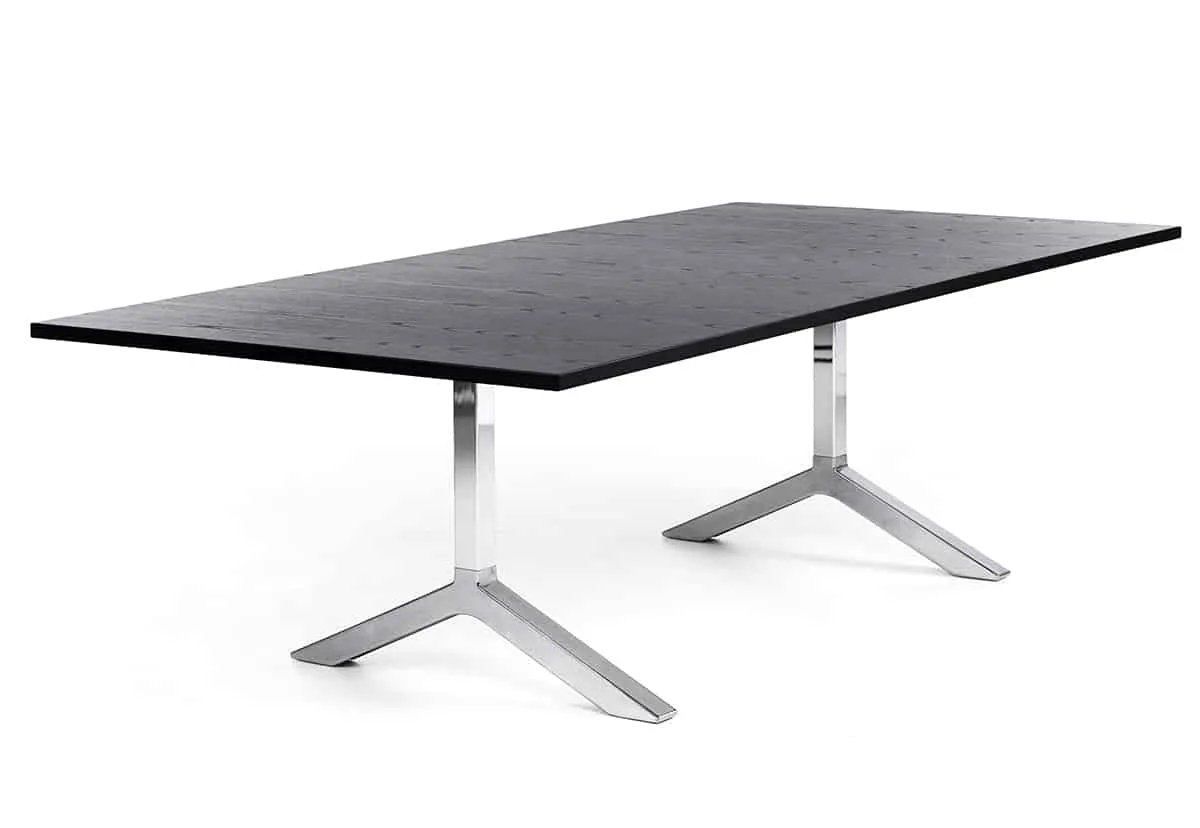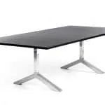 Funk was launched in 2010 and can be seen in a number of interiors around the world. For the Stockholm Furniture Fair 2015, the Funk table has now been further developed with a frame in recycled aluminium, polished or powder coated. The visual expression remains, but the new executions add aesthetics but also environmental dimensions. Visually, the new frame matches chrome very well. In addition, you can match table and chairs with the same powder coat. A perfect, environmentally friendly combination is Funk table together with Lammhults chair Archal, also with a frame in recycled aluminium. For the launch of this new execution, Lammhults has made it possible to draw electricity through the pillar frame.