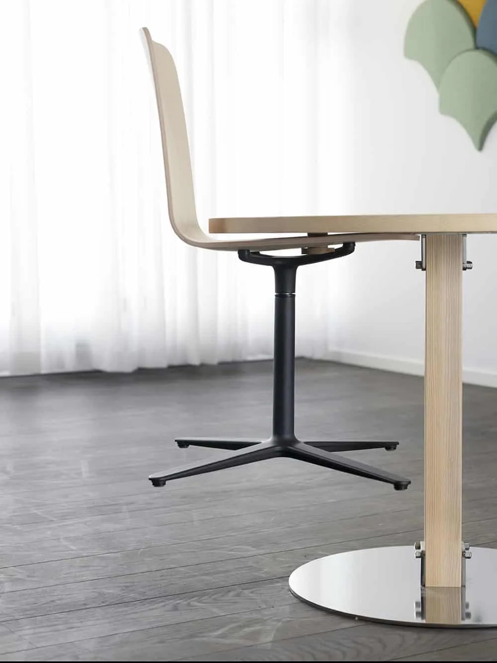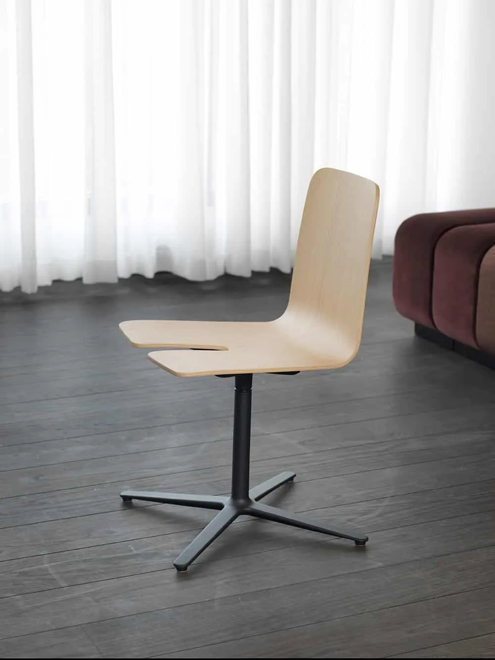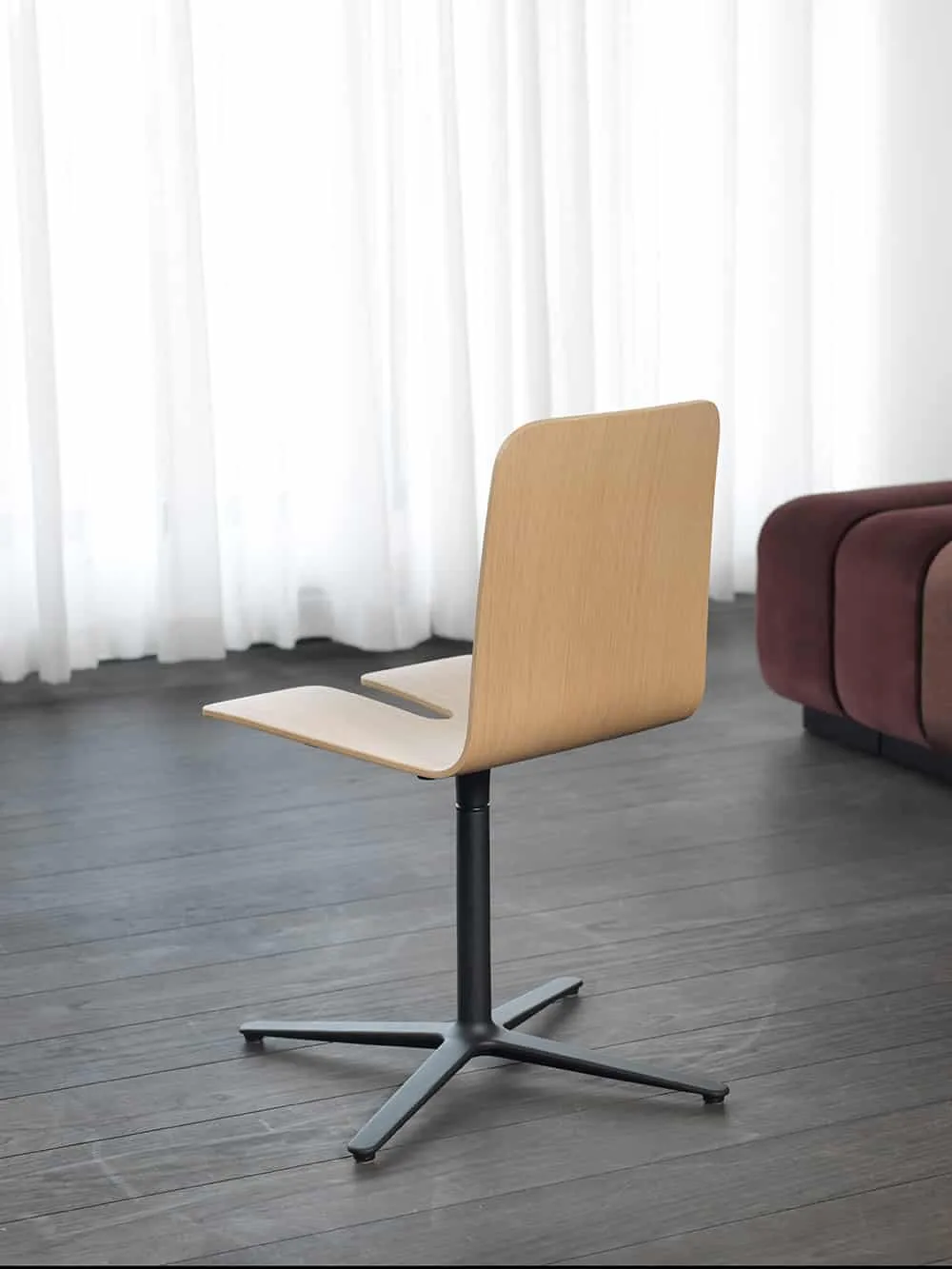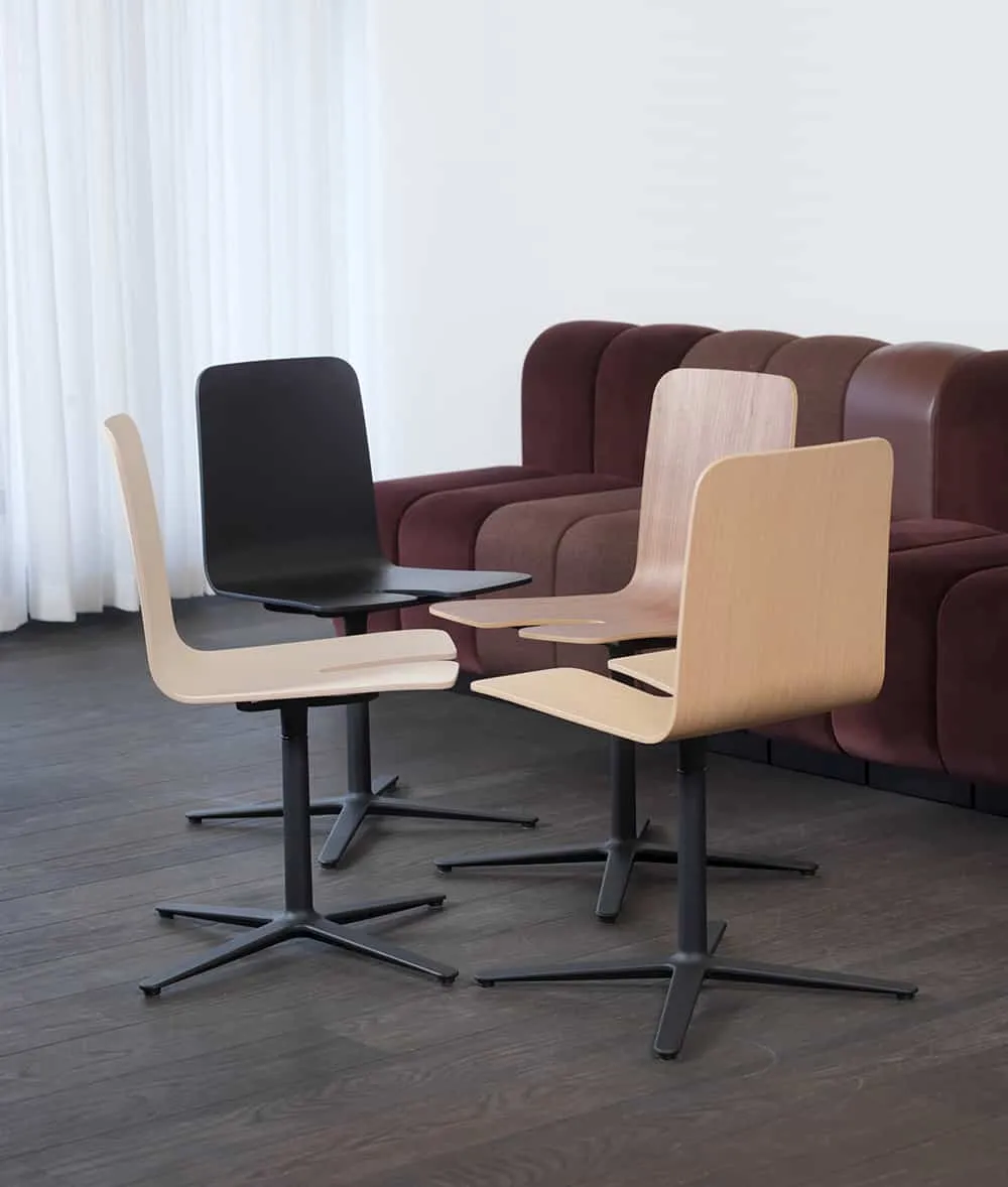 “How can we make the world a little bit different?” asked Olli Deichmann; “how about a stackable, 4-cross frame chair?” And Blasius Osko was of course all for it: “Let’s make something original and elegant for sophisticated hospitality!” The gap is that little detail that lends Olli Deichmann’s and Blasius Oskos’ swivel chair such straightforward functionality. Both the Gap chair and the Gap table are easily stacked away when it’s time to make space or clean public places like cafeterias, restaurants, and conference areas. Or just slot the chair in place under any table using the simple table accessory.