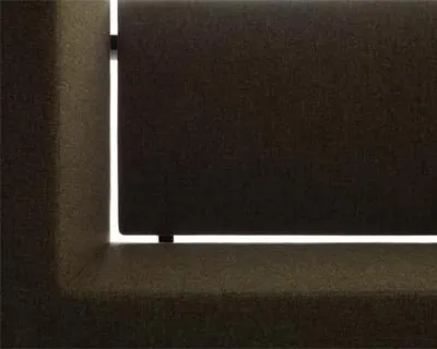 Detail view Bespoke Lounge construction highlighting invisible joinery technique creating seemingly impossible structure