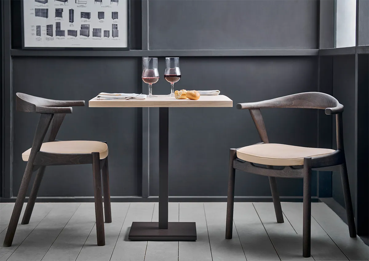 Made with a a backrest in solid steambent beech, sculptured to it’s shape in one single piece. The designer has with a careful hand balanced it’s form into a timeless design, between the contemporary and classic.