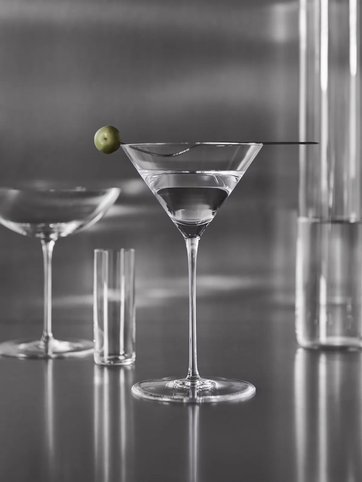- Specialty glasses for champagne (25cl), martini (20cl), and cocktails (26cl)