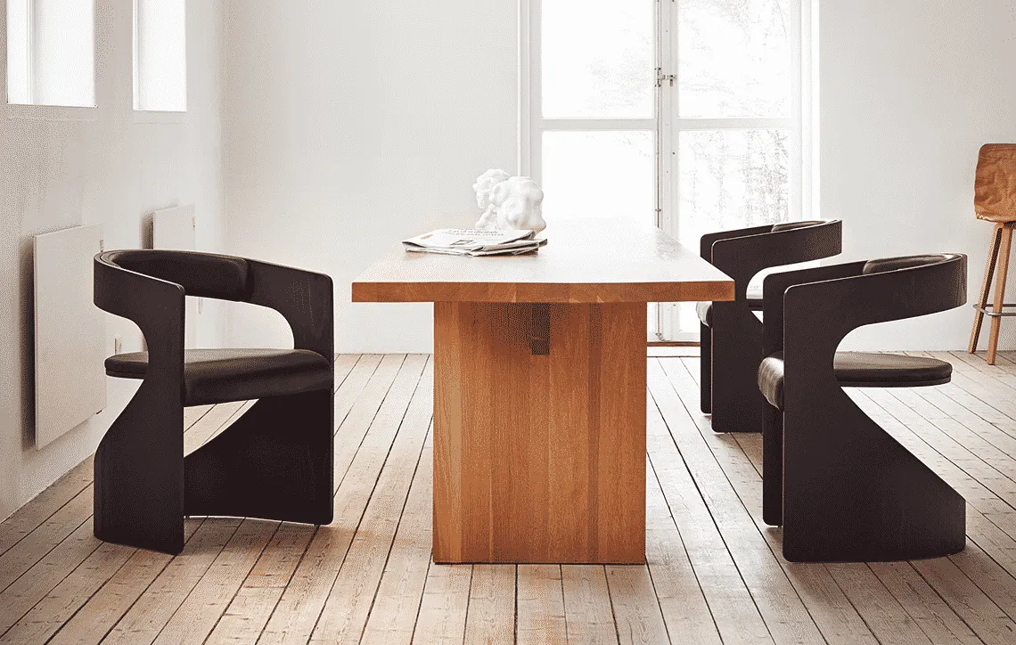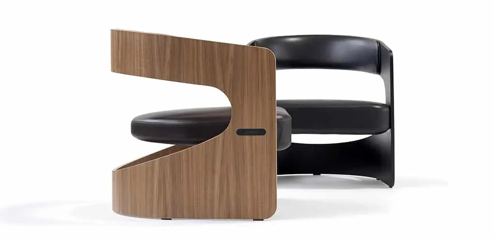 “There is an interesting interplay between open and closed surfaces. The large seat surface, combined with the round, upholstered backrest, offers maximum comfort.”