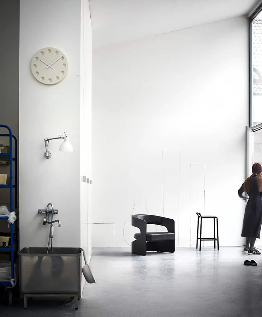 ‘The original Lucky had a certain relaxed feeling about it,’ says Luka Stepan, ’we felt it could also work in a more causal environment, not only next to a dining table.’ The original as well as the lounge version is made in traditional materials: oak plywood, upholstered backrest, and a seat covered in leather or textiles. The sturdy yet flexible chair offers a calculated balance of proportions with a both open and closed character. ’We have upgraded Lucky thoroughly with a fully padded seat, contoured backrest, and a more laidback geometry,’ adds Luka Stepan. Generously evident in all its simplicity, the monochrome colour scheme underlines the stringent and classical expression, which all together offers an almost ritual seating experience.