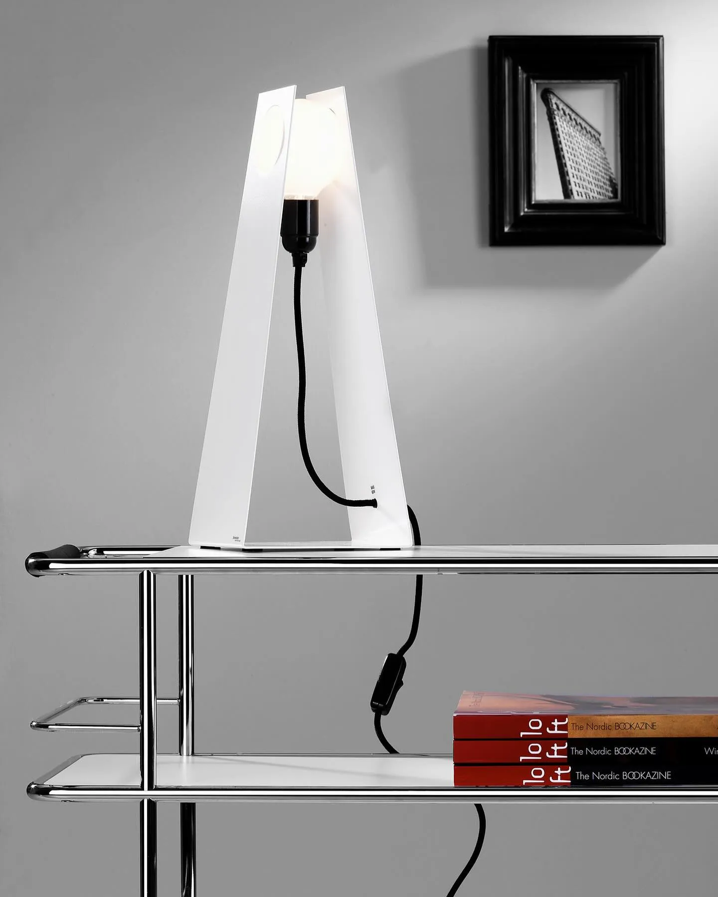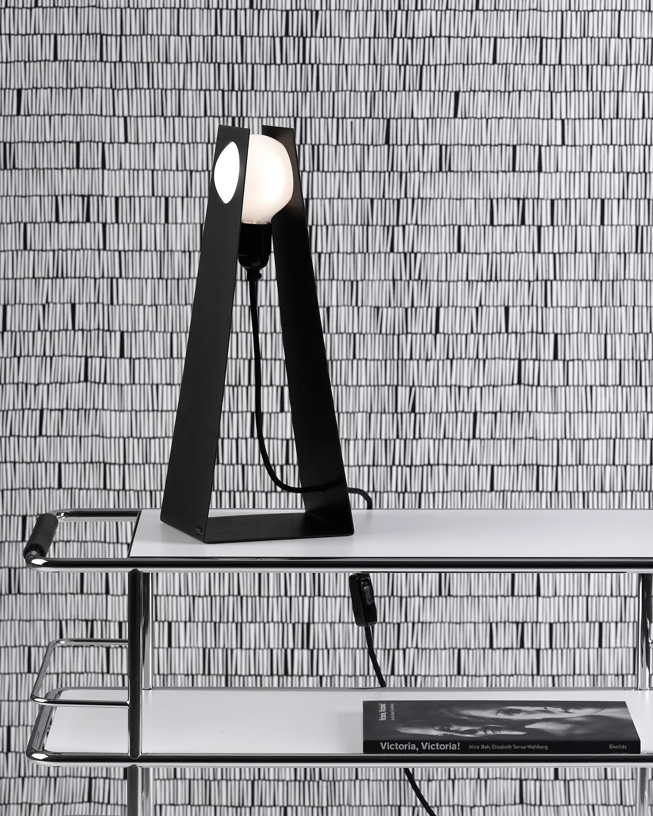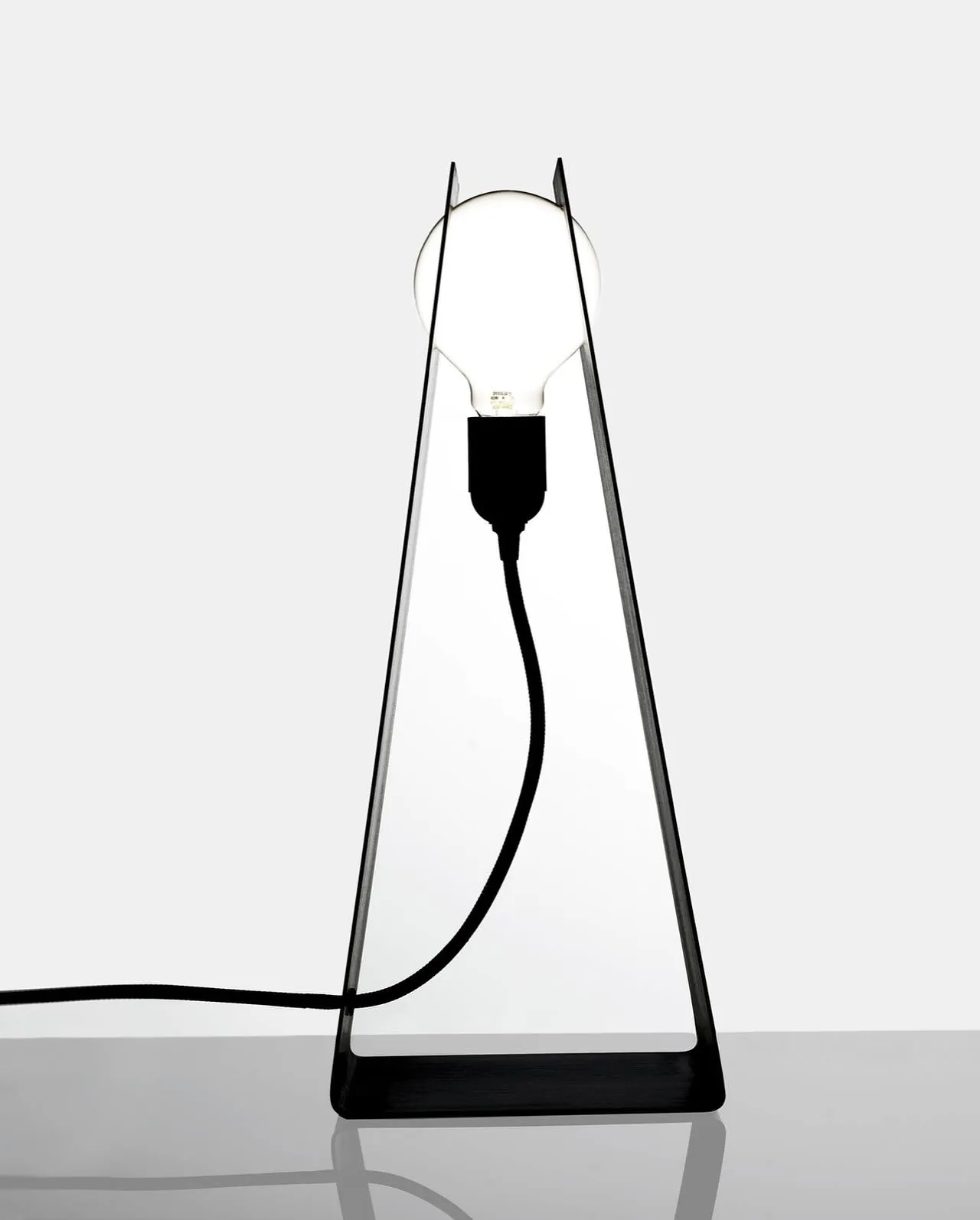 Simple and elegant, this lamp makes a bold graphic statement by reducing its components to an absolute minimum.