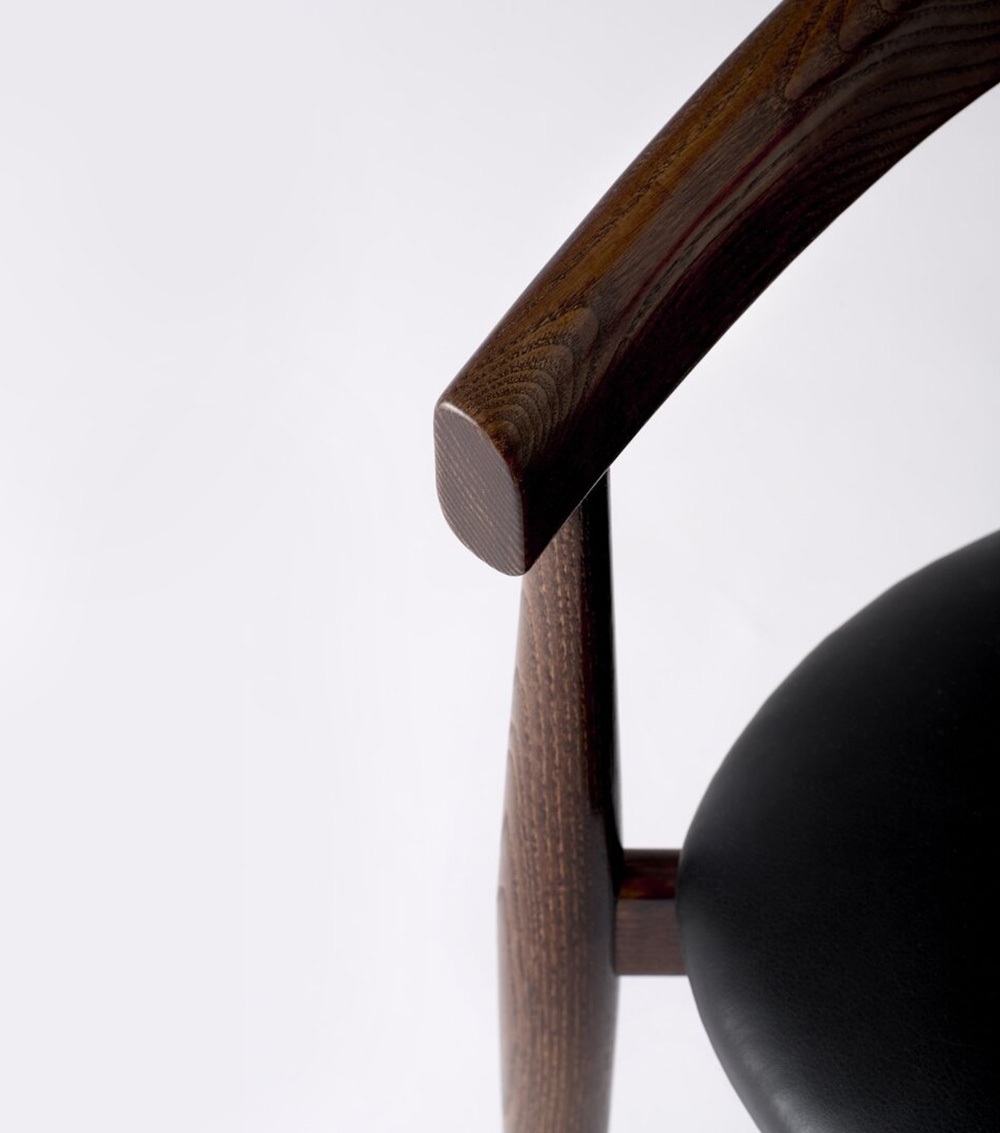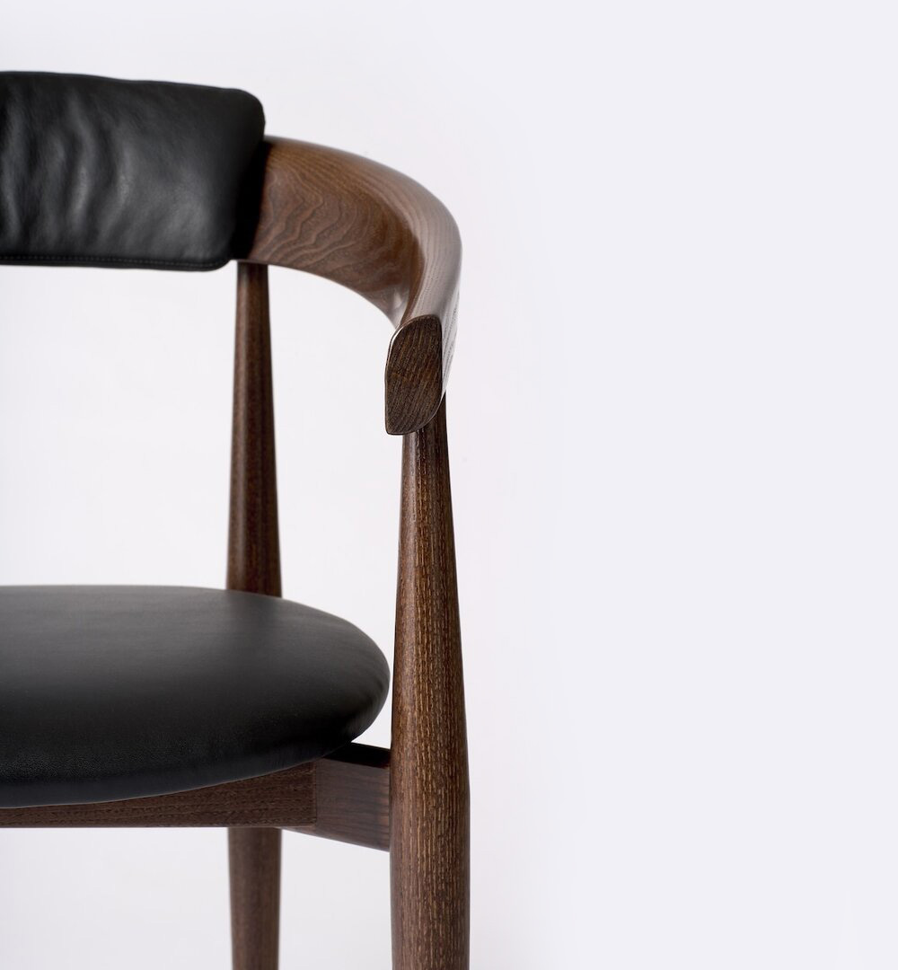 The bowl-shaped seat is padded with a generous natural filling, dressed in vegetable tanned leather or natural textile, offering a superb seat comfort. The gently forward tilted armest with it’s rounded profile offers a relaxing seat posture.