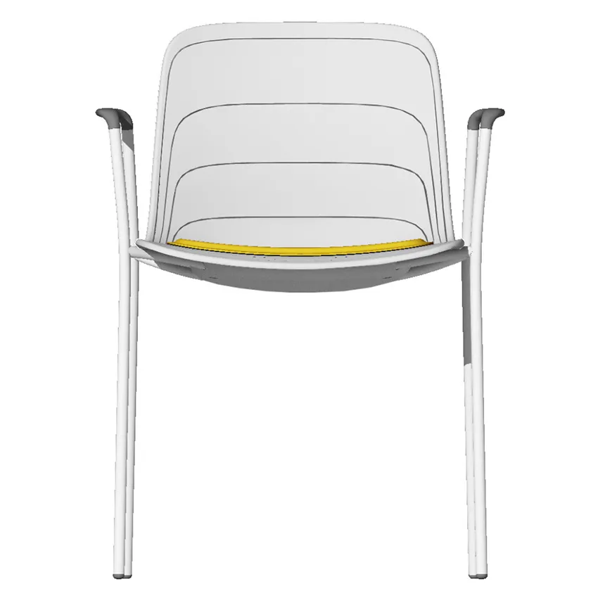 The shell is available in three different, easy to place, colours, white, beige and graphite. Grade is offered as a chair and armchair and also with a swivel base. The frame matches the colour of the seat shell forming a monochrome very graphic expression when powder coated but can also be more a contrasting piece with a chromed frame. For a warmer feeling the armrest is always in polypropylene matching the seat shell´s colour.