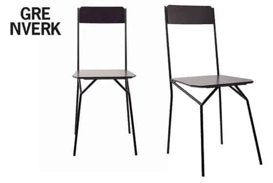På liknande sätt har stol och pall fått kraft i konstruktionen till att hålla upp sits och rygg. I sittmöblerna experimenterar Johan med sin egen formidé. Här ser man att uttrycket från hans grenverk fortfarande känns levande och organiskt, även om det upprepas i tre lika ben eller speglas som stativet till stolen.