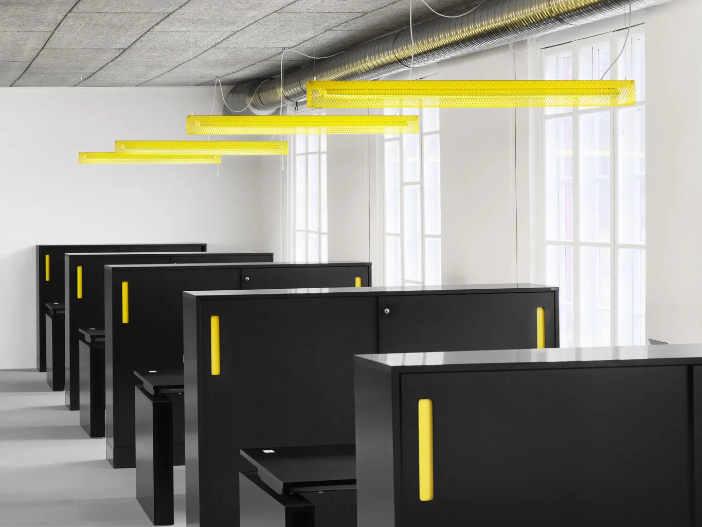 A constant flow innovative processes can be seen in their output, and in Grid, industry standard sheet metal with various hole formations decorates the series of pendant and ceiling fittings.