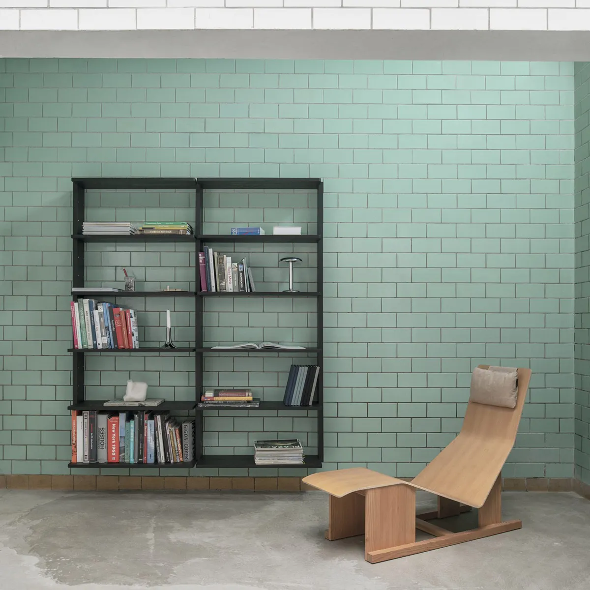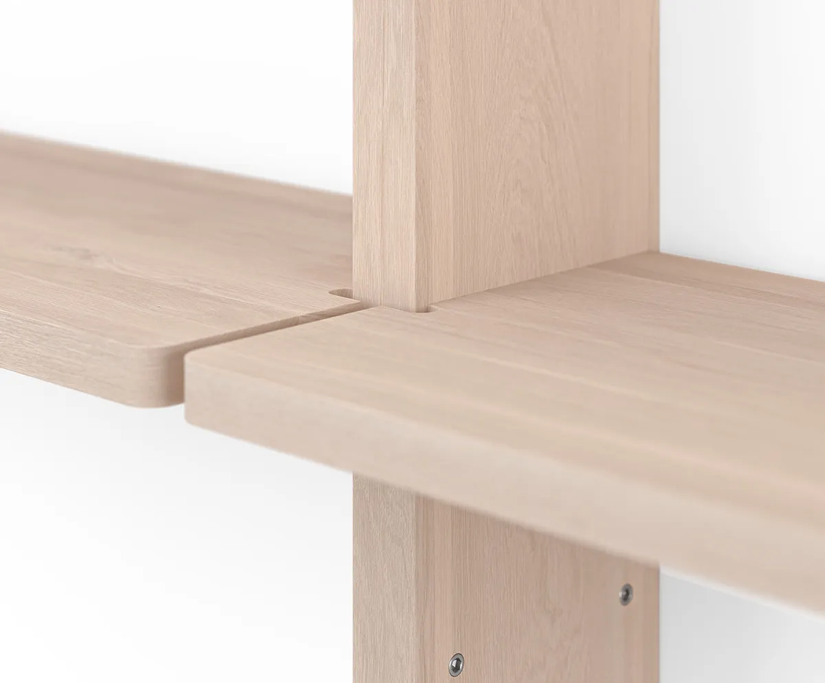 A high-quality shelving system made from FSC-certified ash wood, with shelves that can be customised according to your needs using a simple but clever fixture.