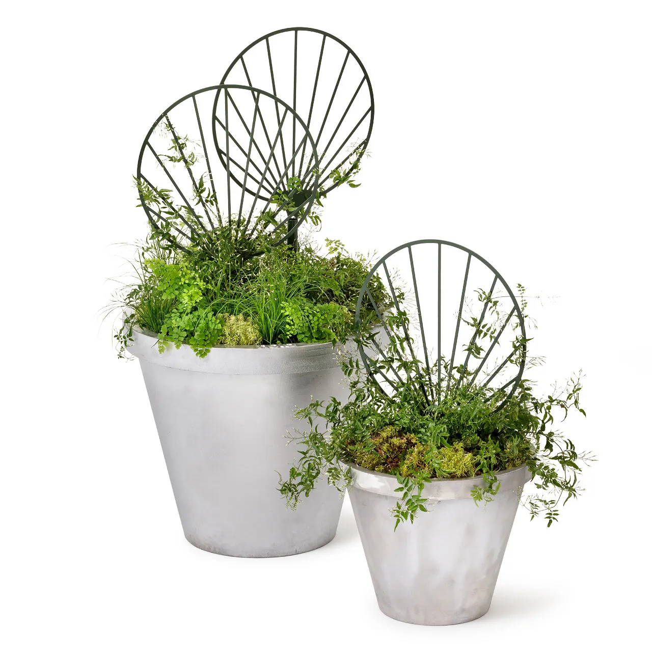 This new addition to the Gro planter series complements the larger freestanding trellis and the medium-sized attachable trellis designed for the rectangular Gro planter. Like the freestanding version, this trellis is compatible with the Gro planter, but can be combined with a range of sizes and shapes not currently offered by the Gro series. On its own, the trellis provides an eye-catching feature that leads creepers and vines upwards along its metal spines. Combined with a planter, the trellis can create a space divider, or provide a subtle means of screening off a larger area. The trellis is unique in its ability to water the plants around it. A discreet water pipe integrated into the frame connects to a watering system that can be placed in the soil beneath it. Designed to be as functional as it is attractive, the Gro trellis encourages growth as it supports the plant life surrounding it.