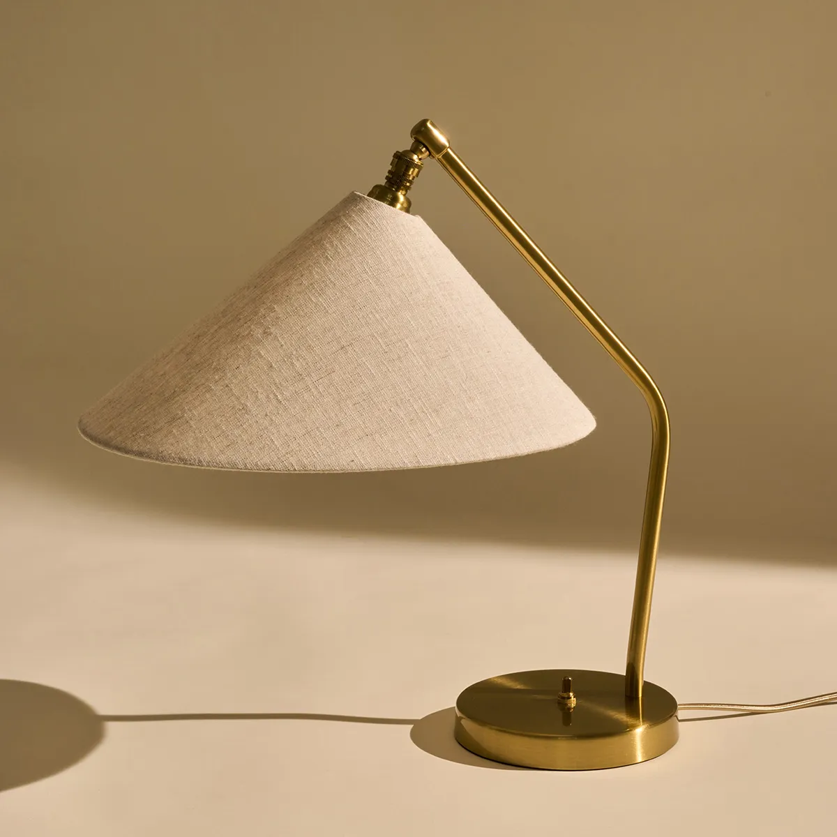 The new edition retains the distinctive angled stem and round brass base that give the Gräshoppa Table Lamp its characteristic personality, ensuring it sits comfortably beside its steel-shaded sibling, while offering a new material expression. The lampshade is hand-made from natural canvas, which effectively diffuses the light, creating a softer ambient radiance that brings a sense of warmth to the space. A new polished-brass finish to the stem and base gently amplifies the glow, adding shine to the surface and lending a richer, more refined expression to the design.