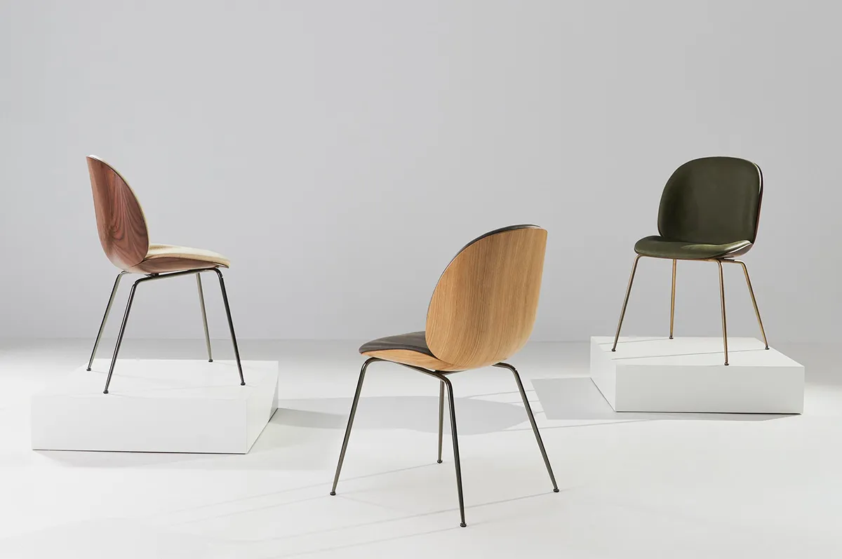 GamFratesi has developed four new upholstered editions of their iconic Beetle Chair – Gubi