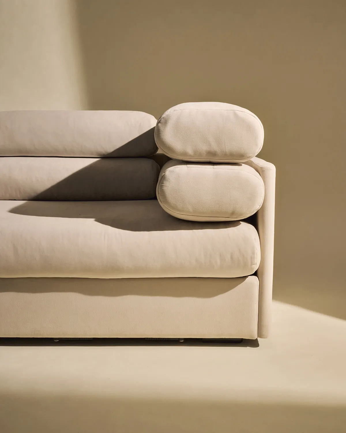 It is not only Elogio’s modules that are adaptable; the oversized cushions are designed to be reconfigured, allowing users to play with form and function and enabling the sofa to evolve with the space and the user’s needs. Identical in size, the side and backrest cushions are interchangeable, creating rhythmic geometries and reinforcing the intentionality of the design.