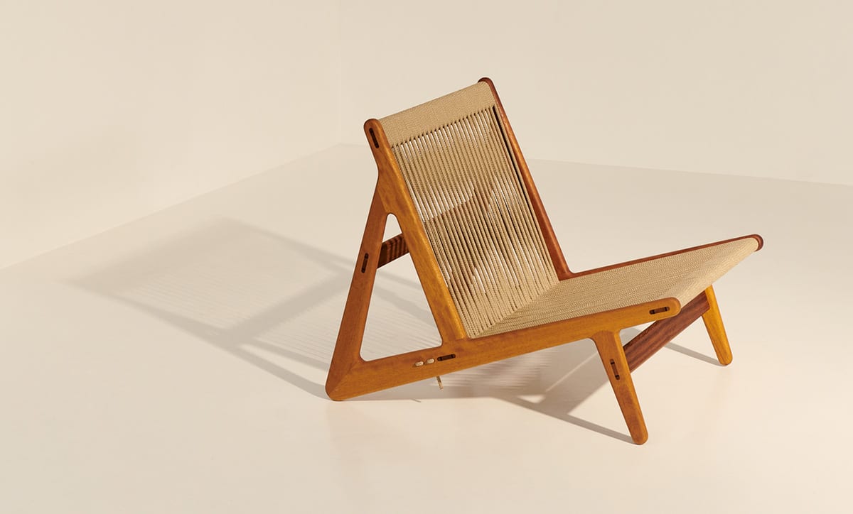 With its low-slung wooden frame and nautically evocative rope seat and backrest, designer and woodworker Mathias Steen Rasmussen’s breakthrough MR01 Initial Lounge Chair has begged to be taken outside since its creation. Two years after launching the indoor version, Rasmussen and GUBI have responded to demand and developed a new variant in iroko wood, specially constructed for use outdoors.