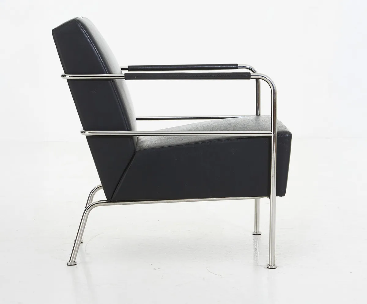 Lammhults_cinema_easychair_chrome_blackleather_side | ScandinavianDesign.com