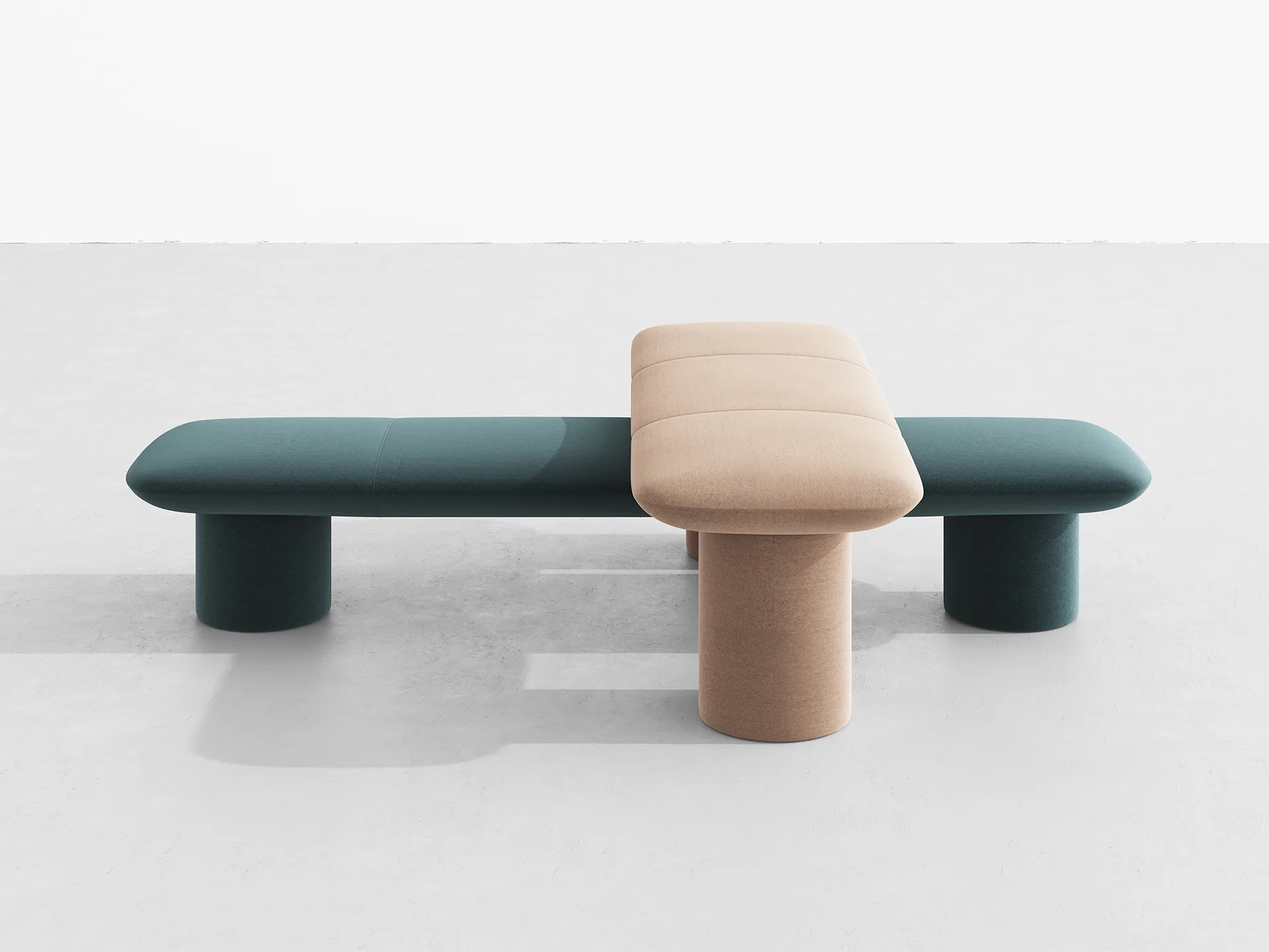 The design of Levels uses simple shapes. In its simplest form, a single bench could sit at the entrance to a shop. Or a large configuration could occupy the center of a communal space. Levels derives its shape and proportions from architecture. It is in essence just two pillars supporting a beam. This approach to form and scale, permits Levels to integrate in most spaces as a hybrid of furniture and architecture.