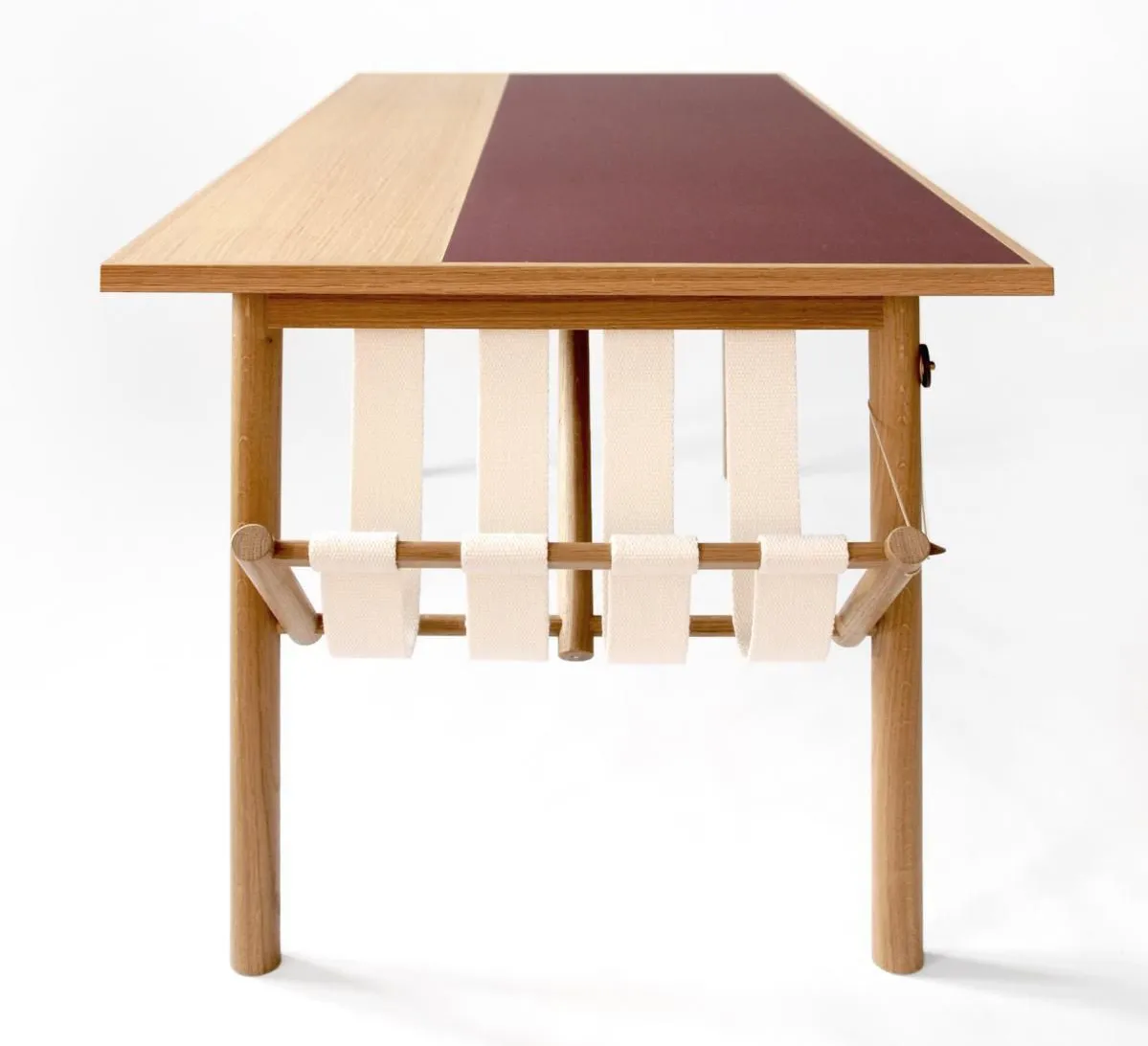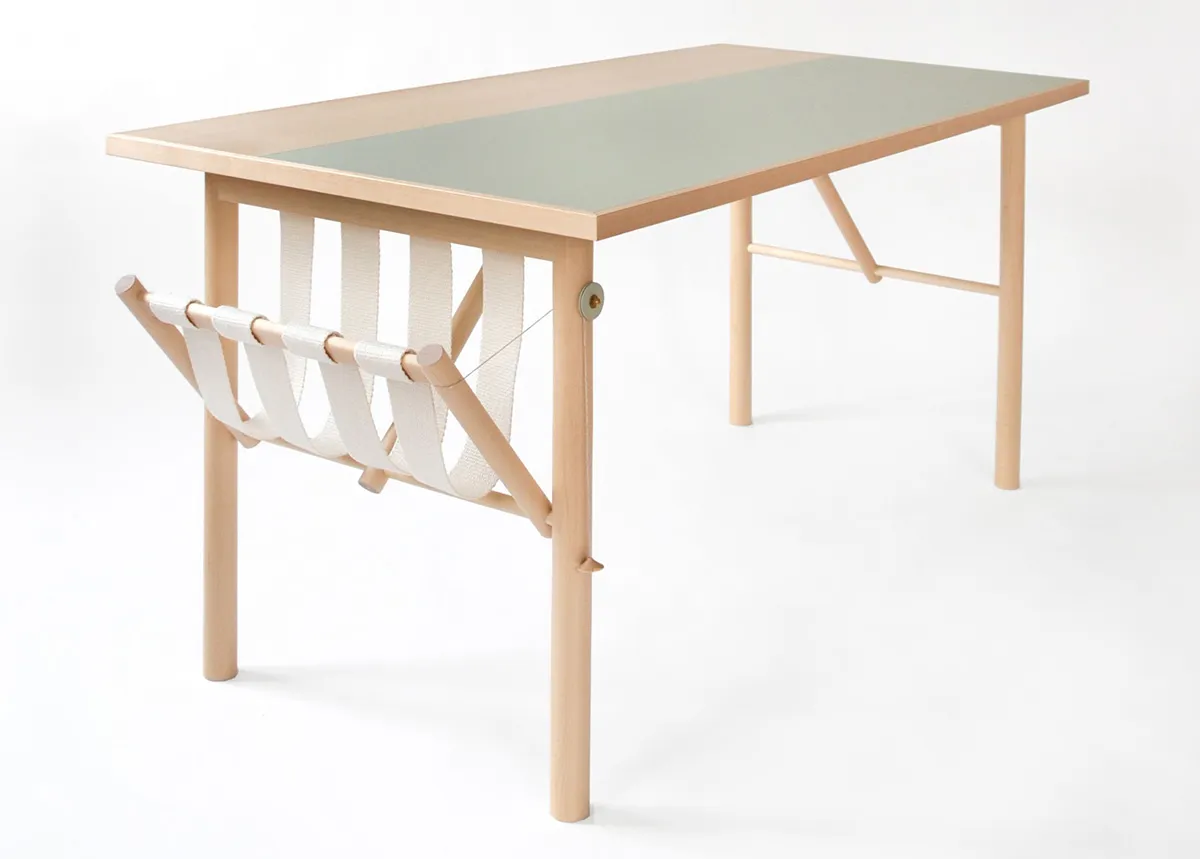 The Enno Desk brings together sleek design and practicality with its birch or oak legs and durable linoleum surface. It’s a great fit for both modern homes and lively office spaces. The natural linen webbing adds a unique touch while providing a practical storage solution.