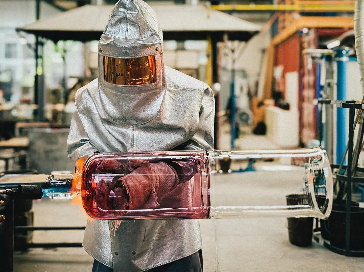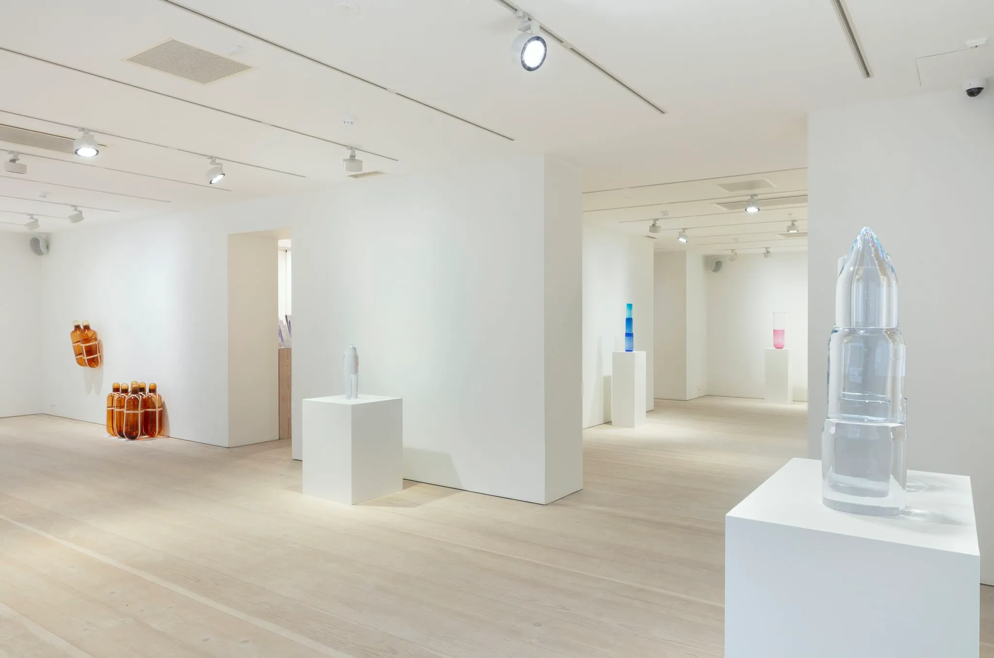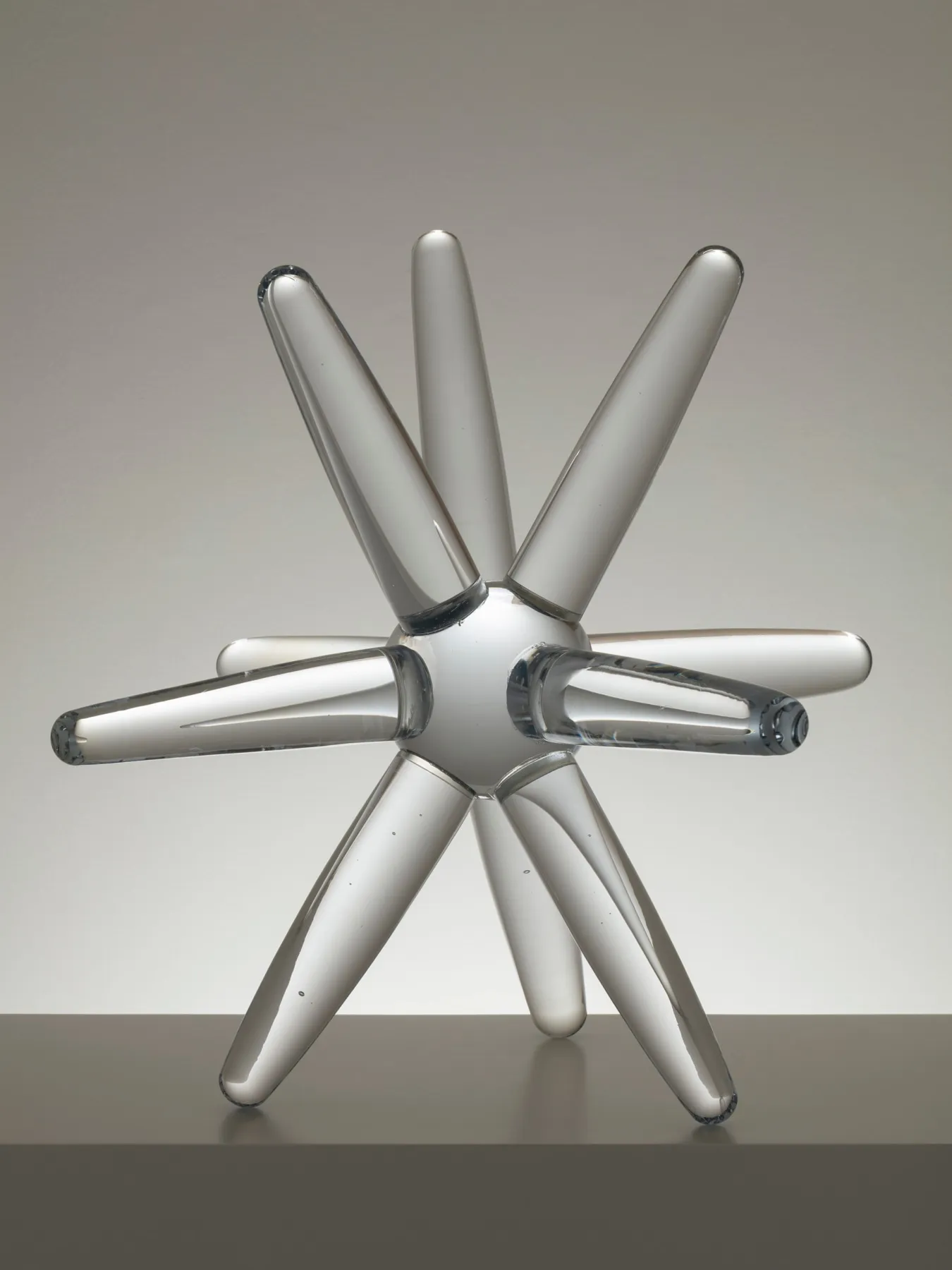 The exhibition presents a selection of unique glass sculptures, both free-blown and mold-cast