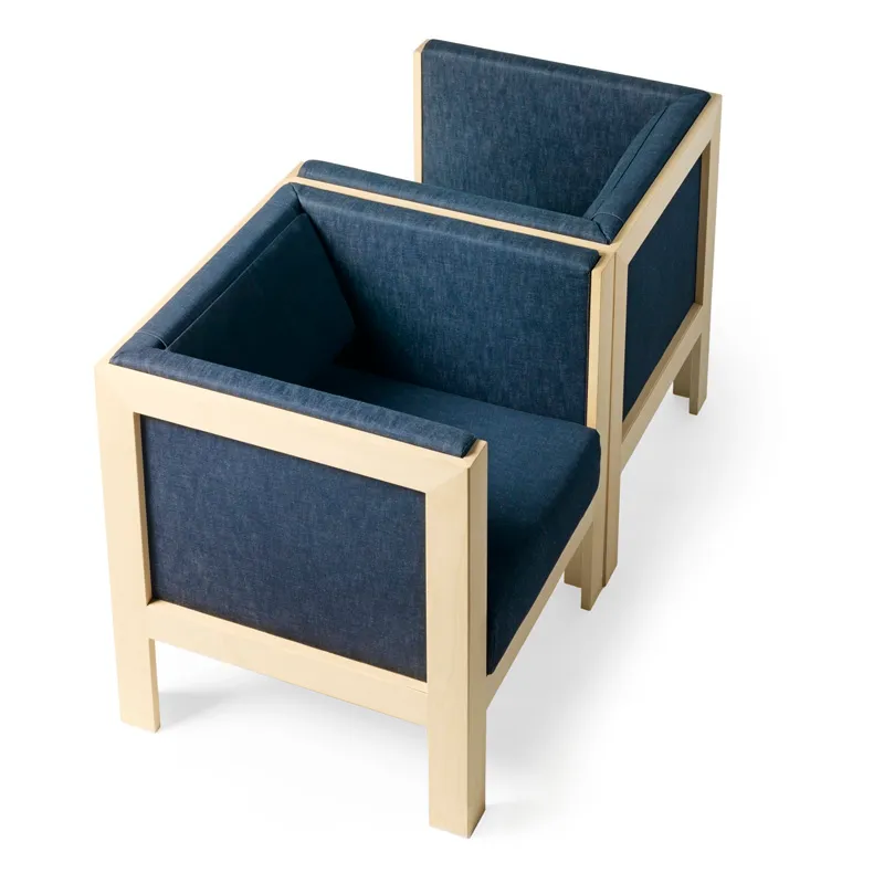 Frame in natural beech or oak. Upholstered i fabric or leather.