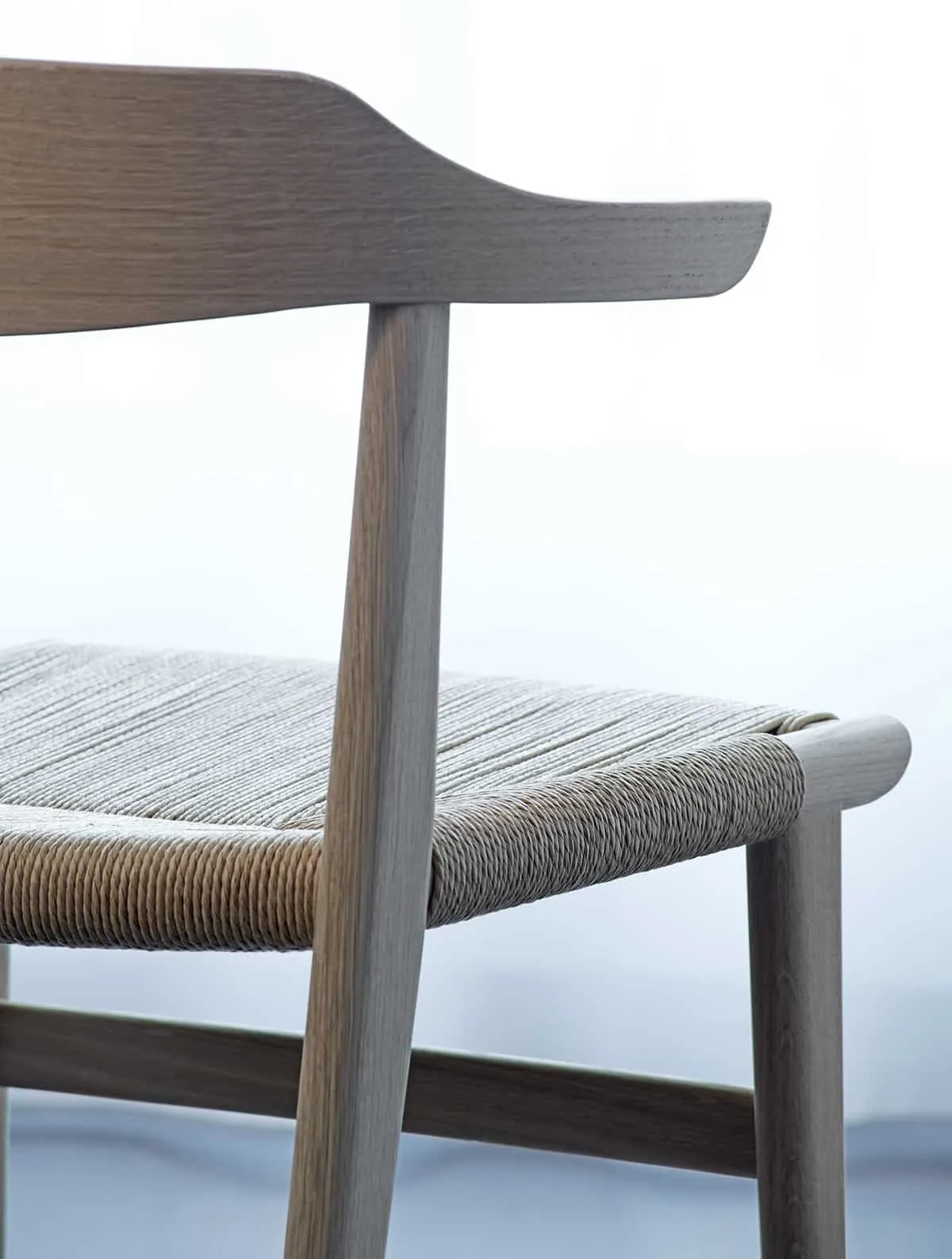 kitchen table as an exclusive bistro. Inspired by classical Chinese chairs and the Greek klismos chair, it is a Nordic interpretation with scaled-down forms and discrete details. The envelope-weave seat is made by hand from 166 metres of paper-cord twine. This durable material lasts at least 30 years and develops a lovely patina over time. Hedda is also available with a leather seat from Tärnsjö tannery.