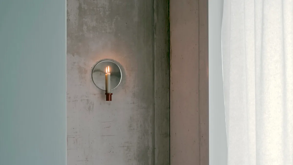 It uses the age-old trick of combining a sconce with a mirror to increase the reflection of light – here in a striking version that is both contemporary and timeless enough for any setting.