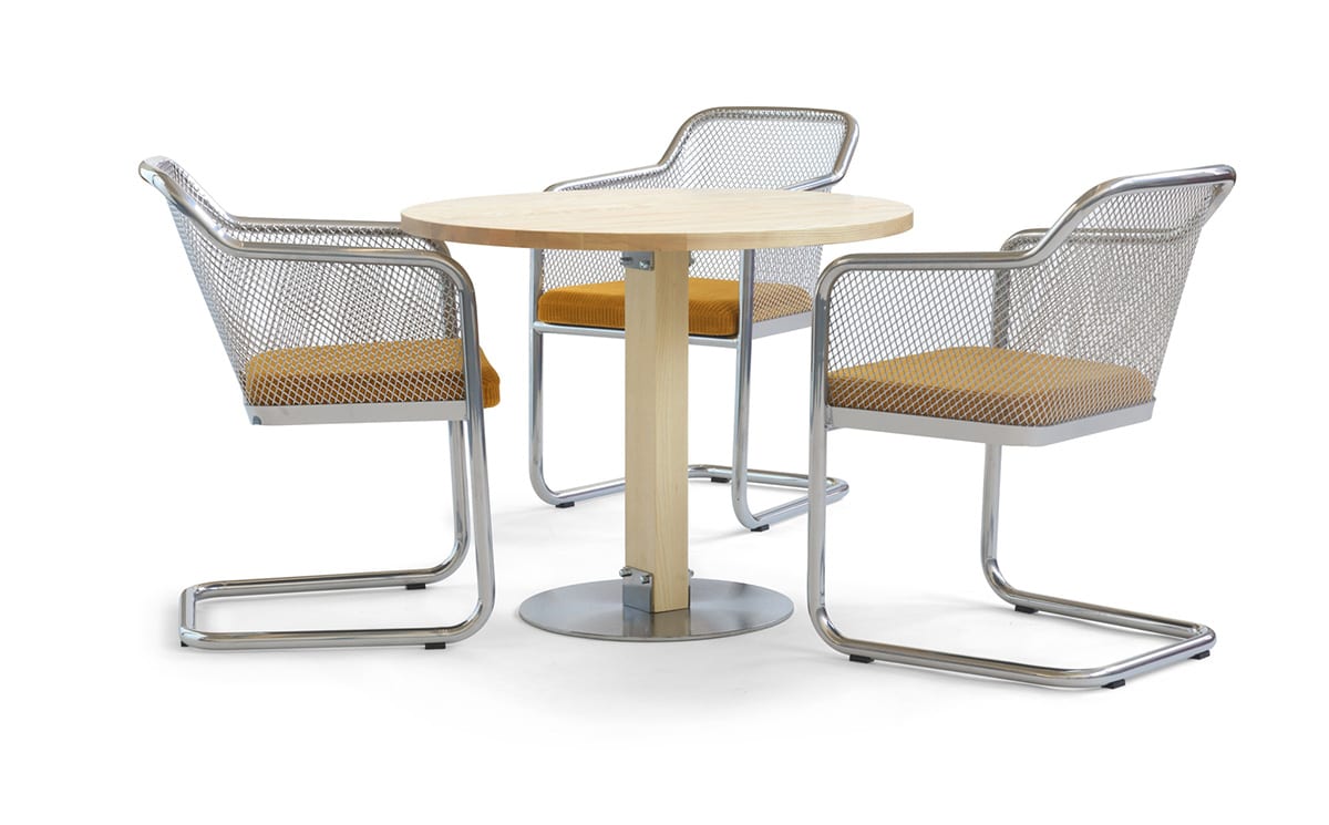 Thomas Bernstrand, who designed the original Honken family of one-, two-, and three-seaters in collaboration with Stefan Borselius and Johan Lindau, has kept the sturdy metal mesh, letting the visually precise steel bars form the legs as well. Honken X40 and X46 will claim its place as freestanding cantilevered easy chairs in any space. The chairs slides easily in under any table, and with just that little swing needed to not get tired during extended use. Cushion in textile fabric or leather, and with a choice of different lacquers.