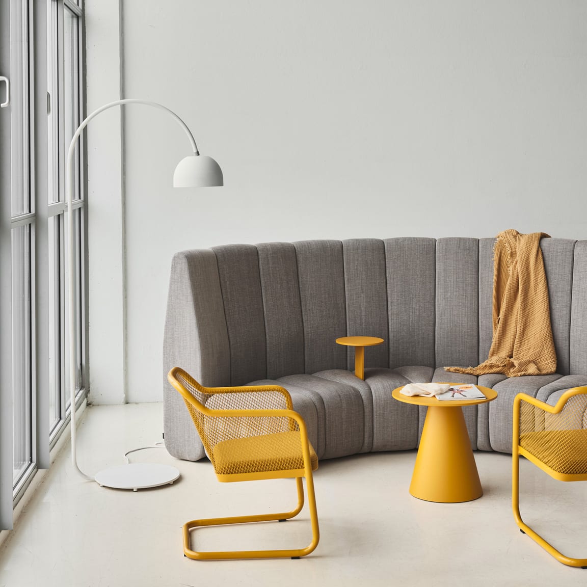 ”A slight inclination of the backrest and the inflection of the cantilevered legs allows for good comfort. Honken will be as happy as a freestanding easy chair or as a part of Blå Station’s modular furniture systems.”