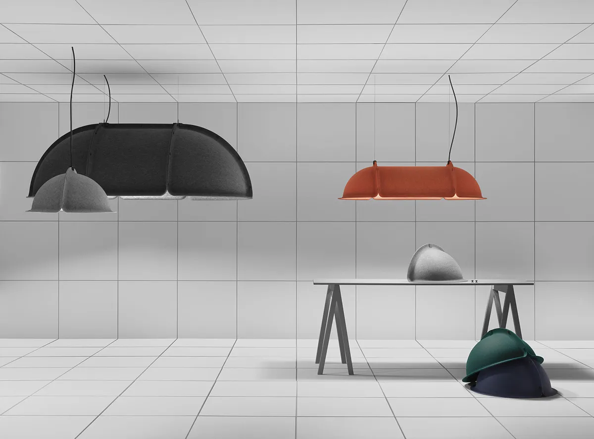 Hood is a luminaire cherished for its multifaceted features: it provides quality light, pleasant sound absorption, and a decorative expression to interior spaces. A couple of years ago, we curiously examined Hood and asked ourselves how we could enhance it in yet another aspect: material. The luminaire’s shade made of molded felt sparked an in-depth exploration to discover new raw materials that could improve our product.
