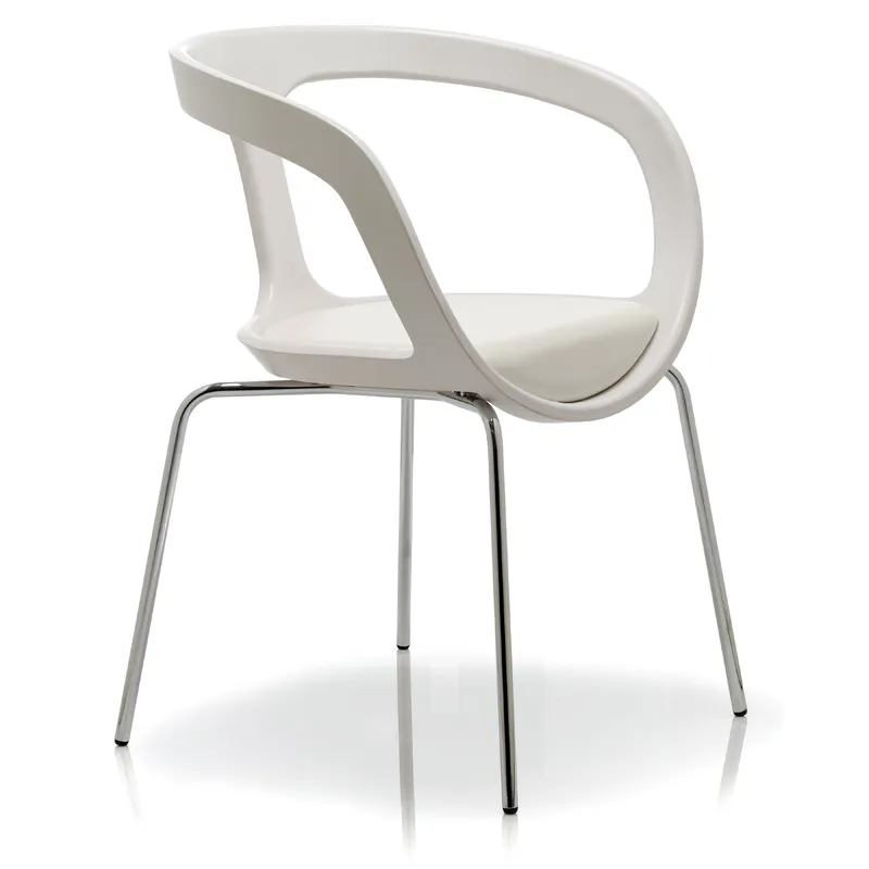 Hug, the armchair are Anna von Schewen’s first chairs for Gärsnäs. The seat is made of solid bent wood elements which have been crafted by Gärsnäs to produce a satisfying experience for both hand and eye. Hug come with open sides or with upholstered inserts, allowing for the widest variety of applications. Seats and optional side pads are available upholstered in either fabric or leather. Chair frames are steel tubing.