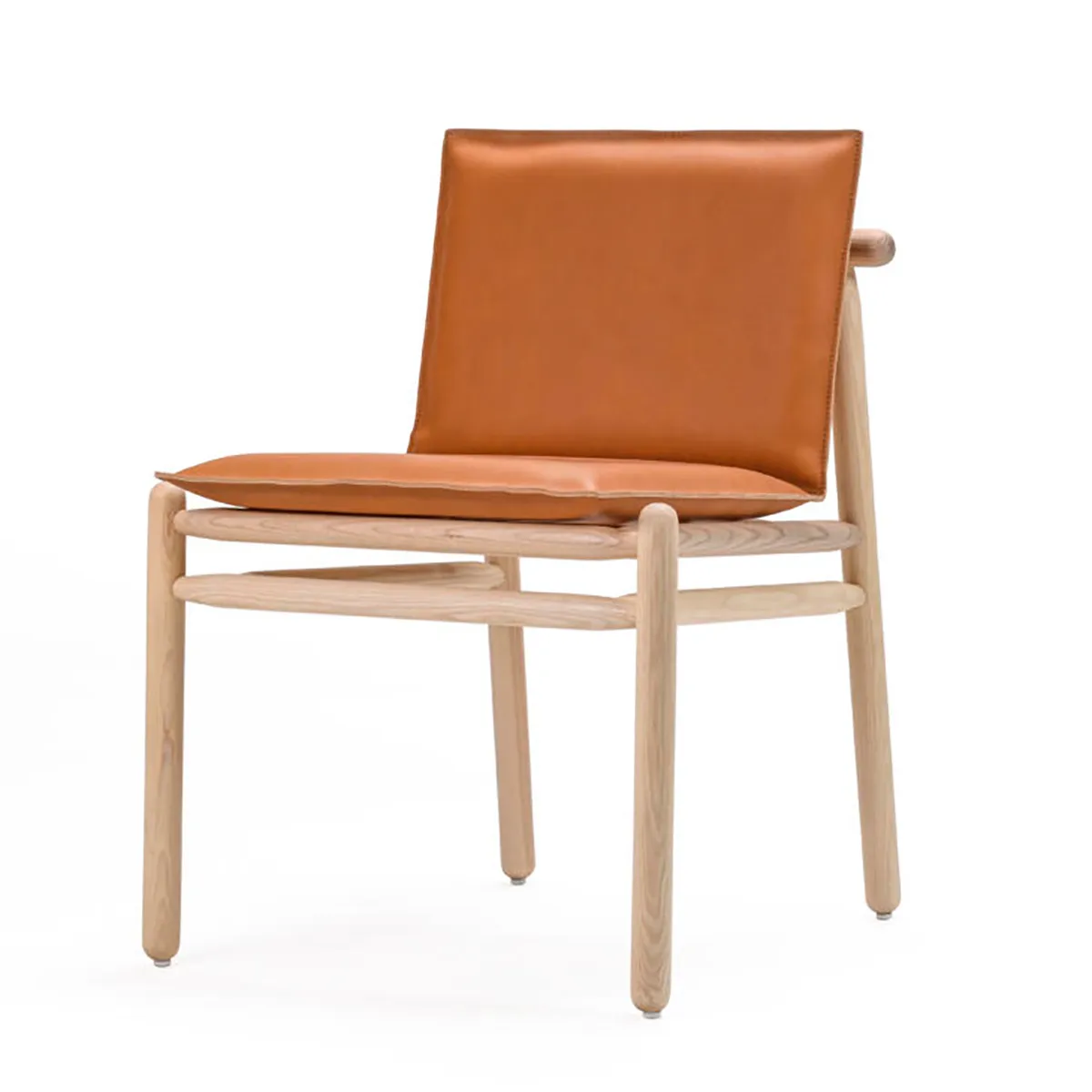 Igman dining chair is soft and lightweight chair that combines a solid wood frame and a removable soft seat & backrest upholstered in either vegetable-tanned 2.2mm thick saddle leather or a choice of fabrics.