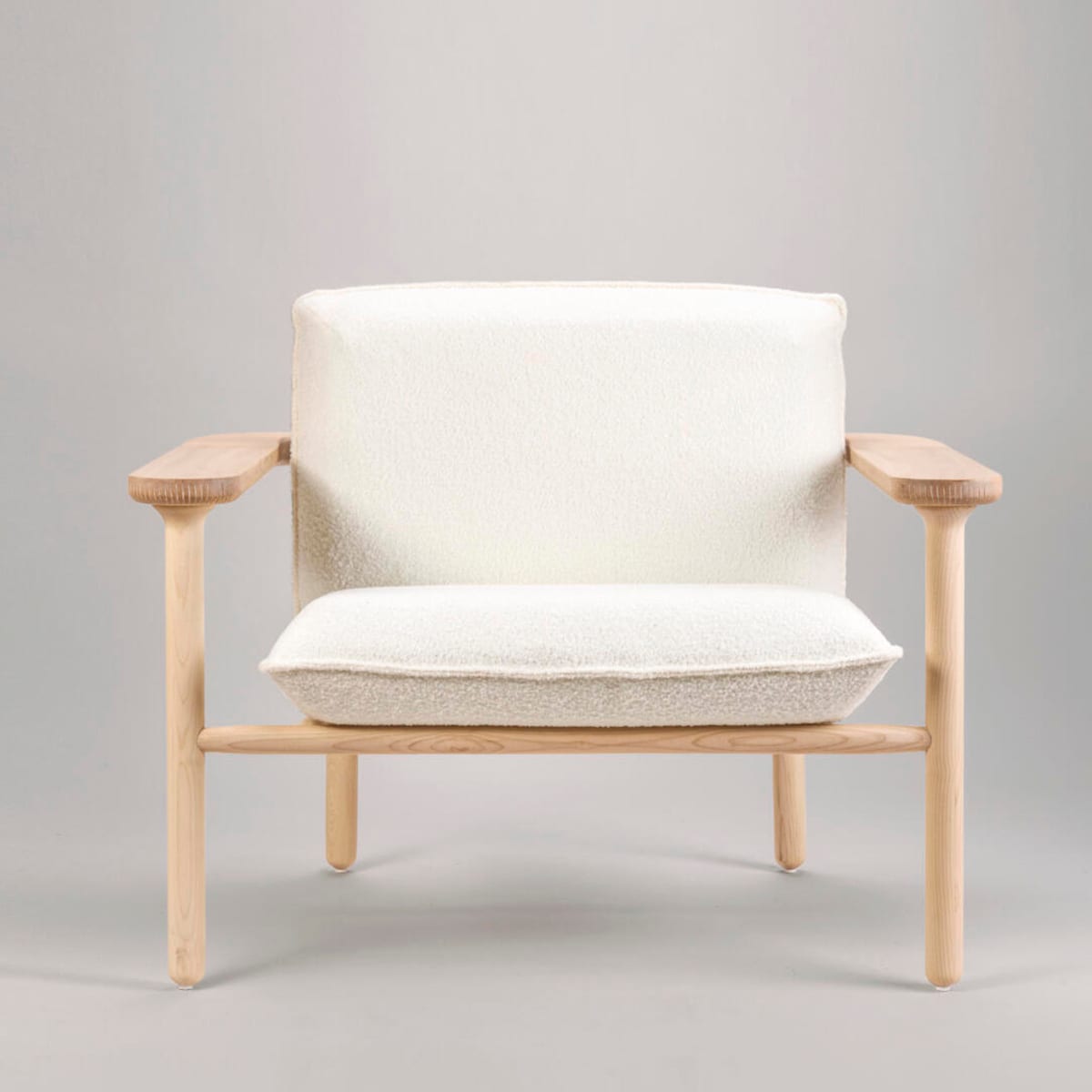 The chair has a strong, but unpretentious character. The softly rounded structure in solid wood creates a feeling of warmth, while the understated carvings underneath the armrests create a subtle tactile feeling.